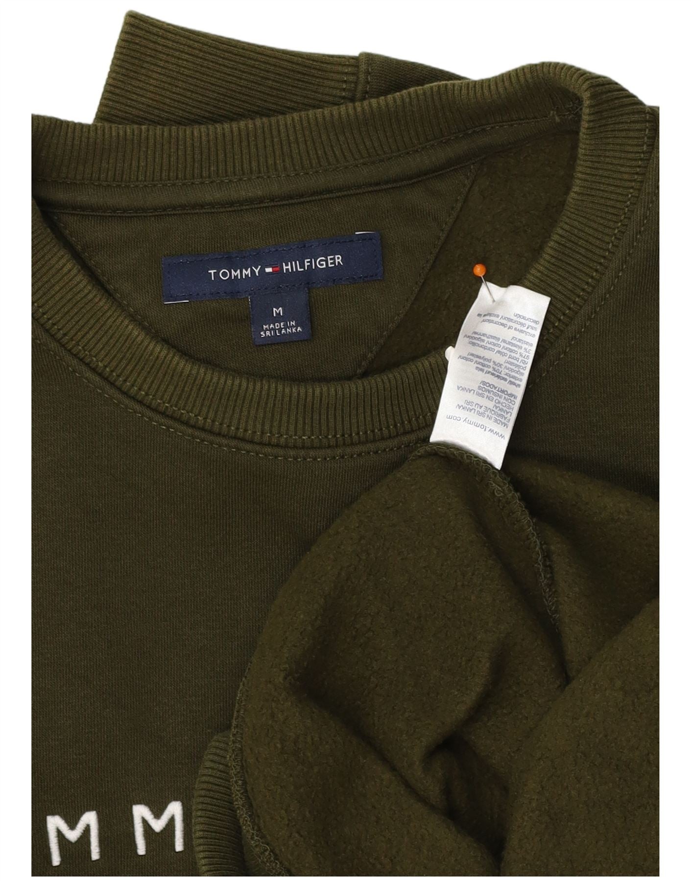 TOMMY HILFIGER Mens Graphic Sweatshirt Jumper Medium Khaki Cotton
