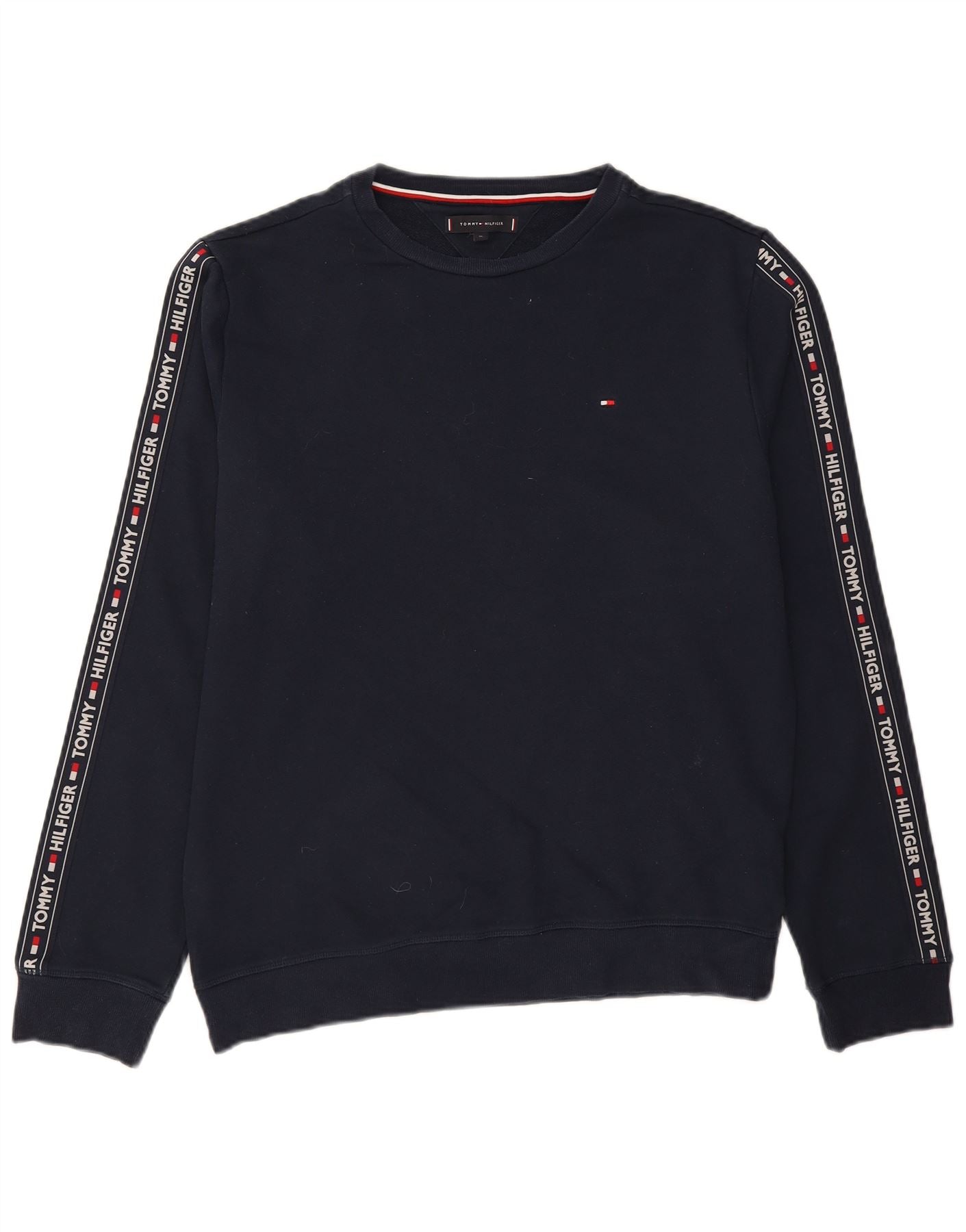 TOMMY HILFIGER Mens Graphic Sweatshirt Jumper XL Navy Blue Cotton