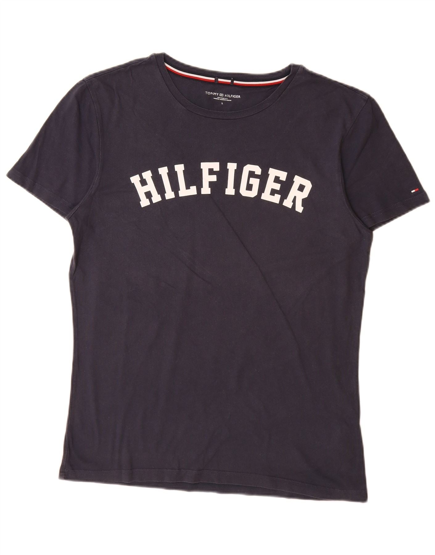 TOMMY HILFIGER Mens Graphic T-Shirt Top Large Navy Blue Cotton
