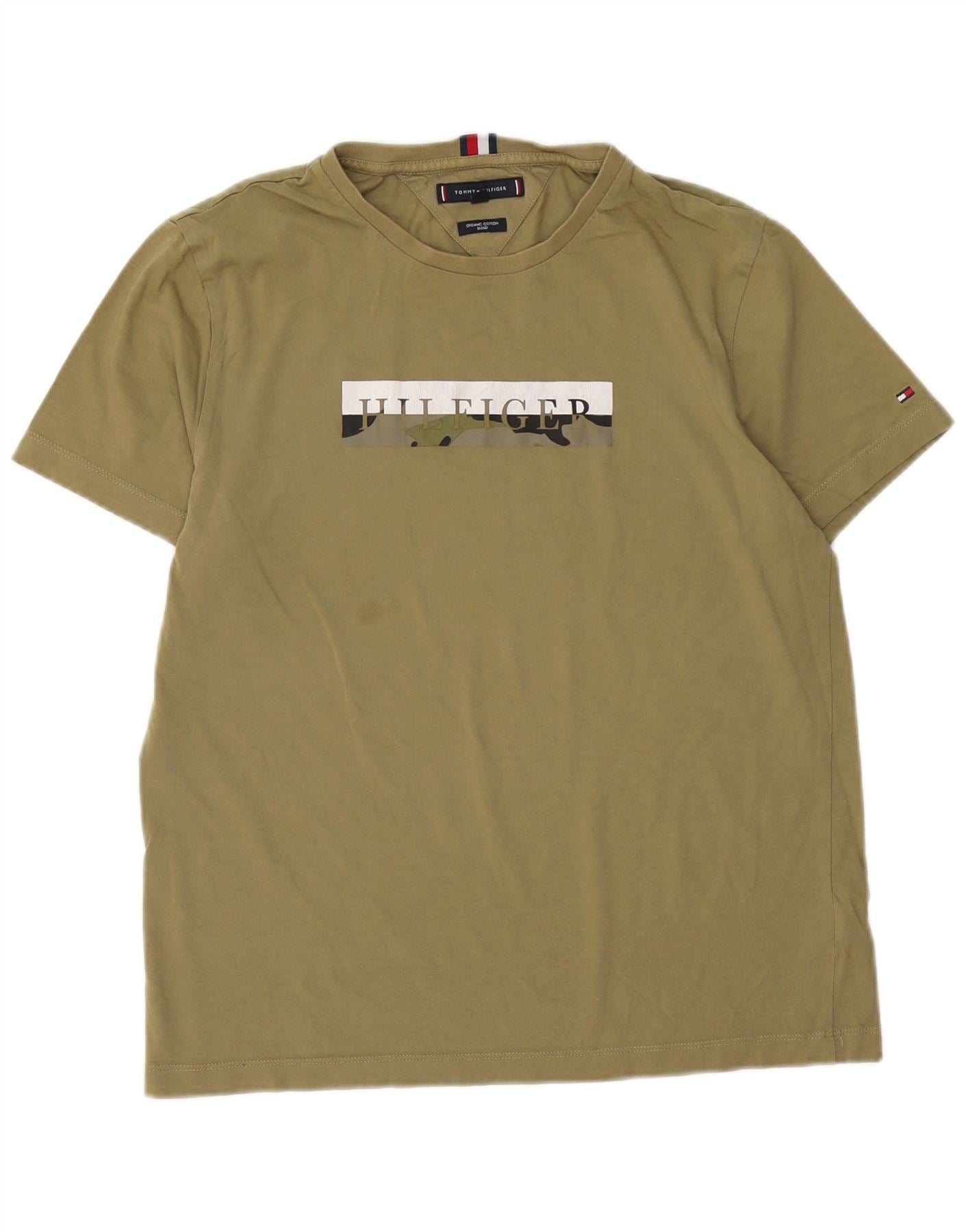 TOMMY HILFIGER Mens Graphic T-Shirt Top Medium Khaki Cotton