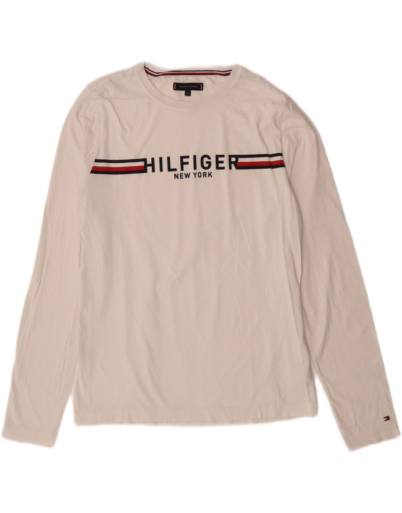 TOMMY HILFIGER Mens Graphic Top Long Sleeve Medium Off White Striped