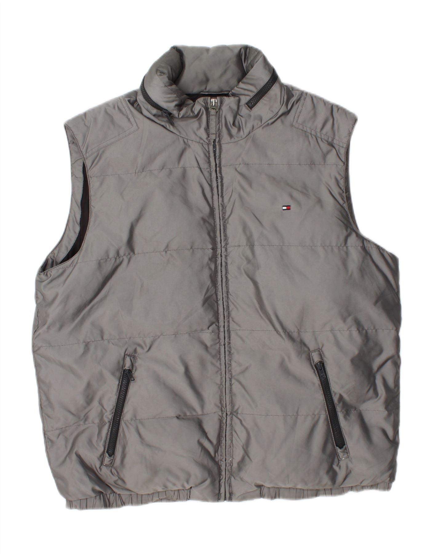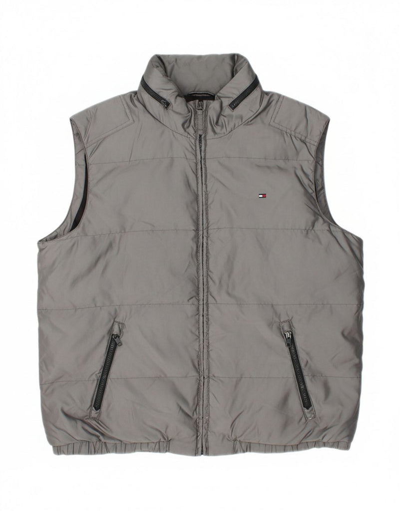 TOMMY HILFIGER Mens Hooded Padded Gilet UK 40 Large Grey Nylon