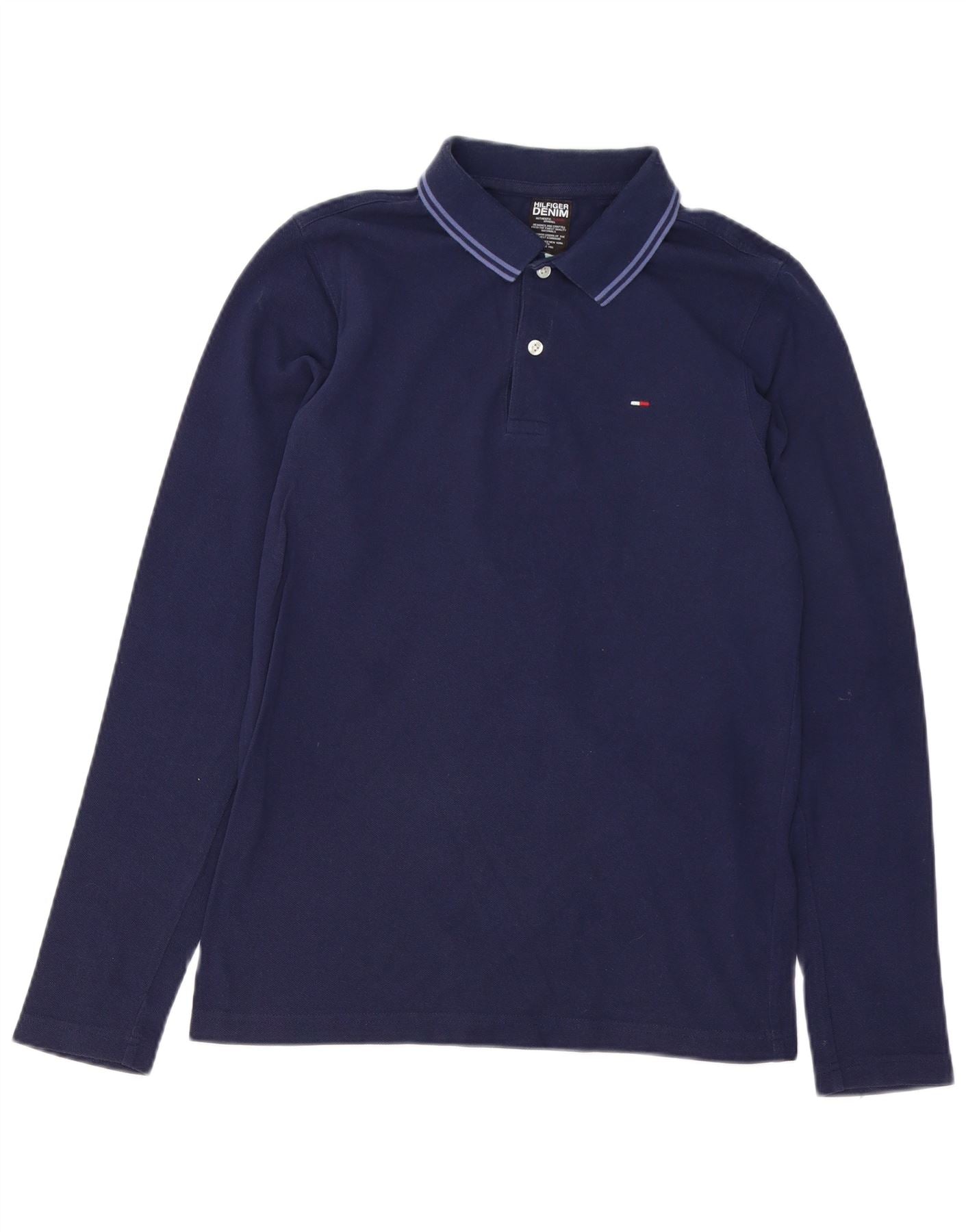 TOMMY HILFIGER Mens Long Sleeve Polo Shirt Medium Navy Blue Cotton