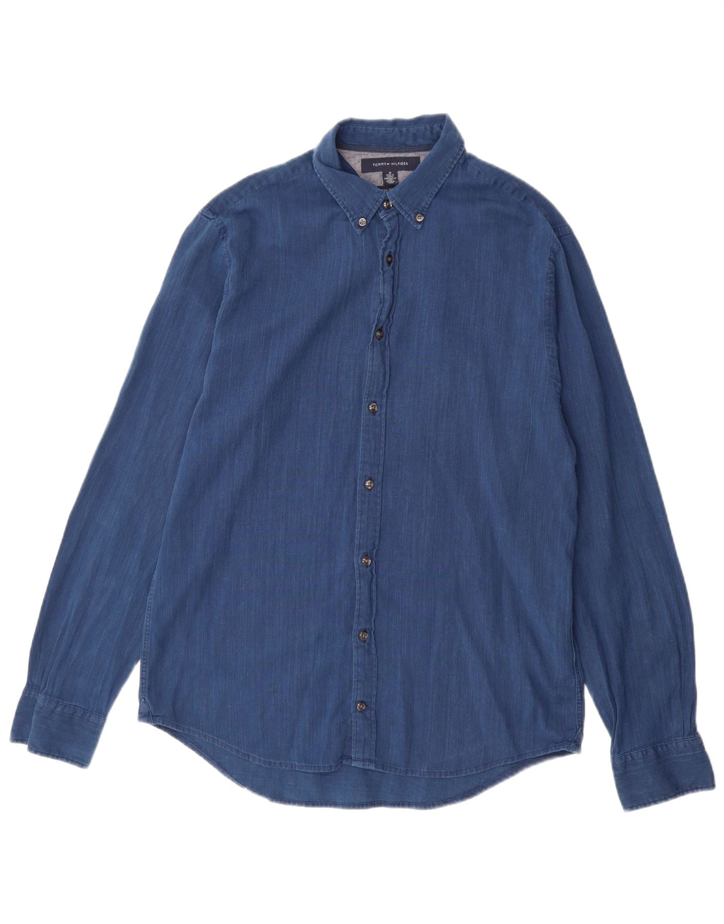 TOMMY HILFIGER Mens New York Fit Shirt Medium Blue Cotton