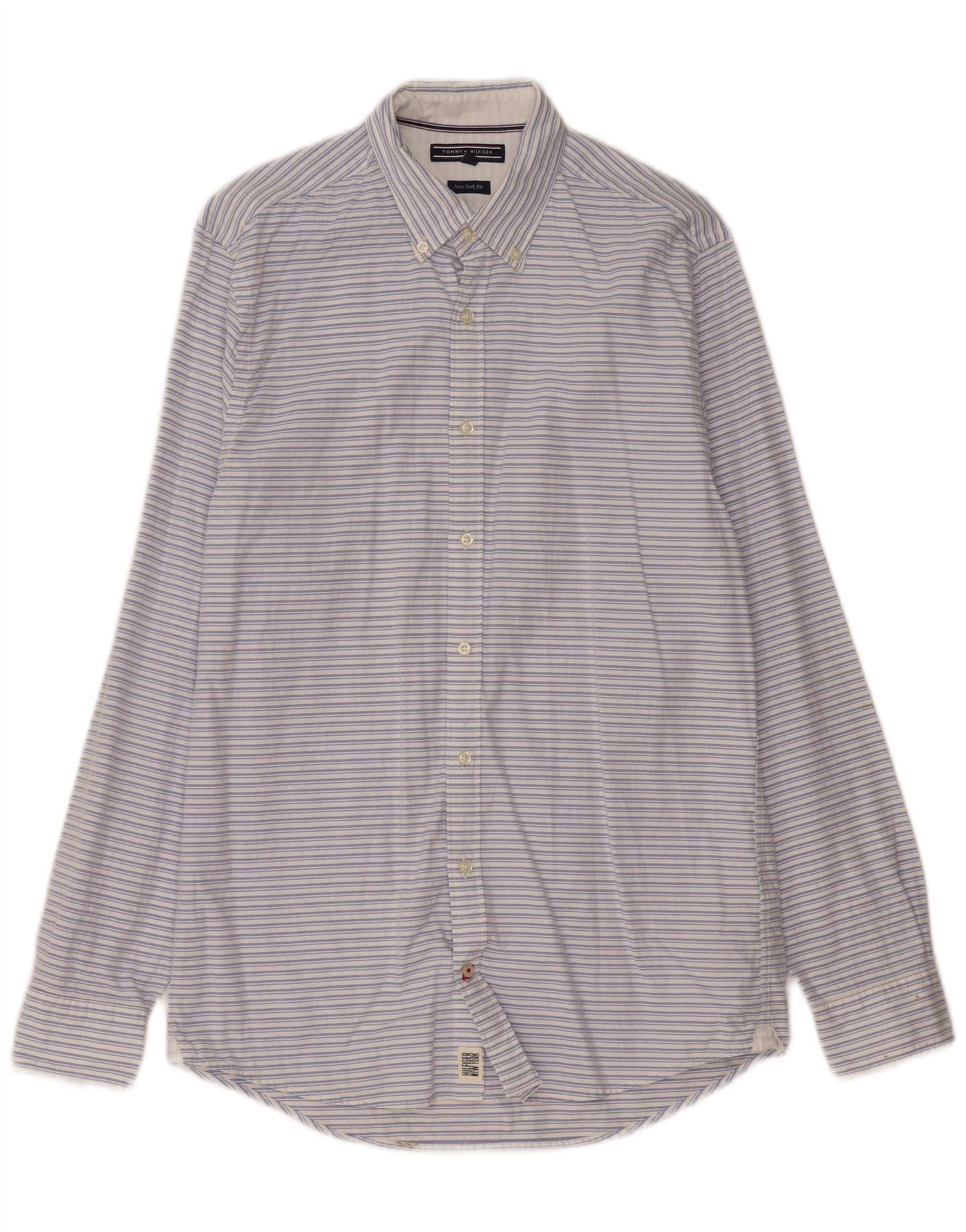 TOMMY HILFIGER Mens New York Fit Shirt Medium Blue Striped Cotton