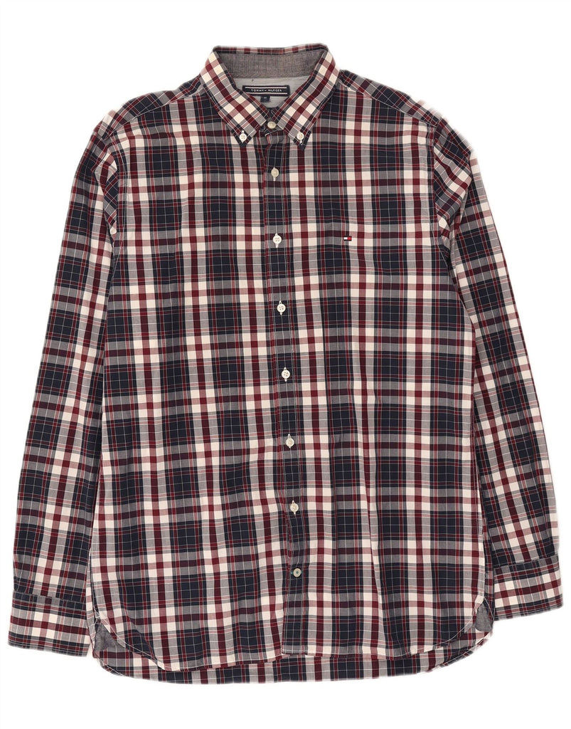 TOMMY HILFIGER Mens New York Fit Shirt Medium Navy Blue Check Cotton