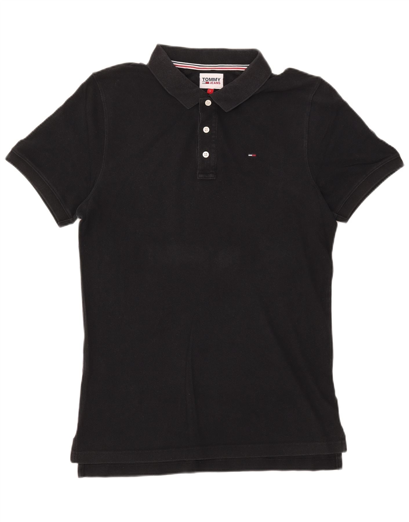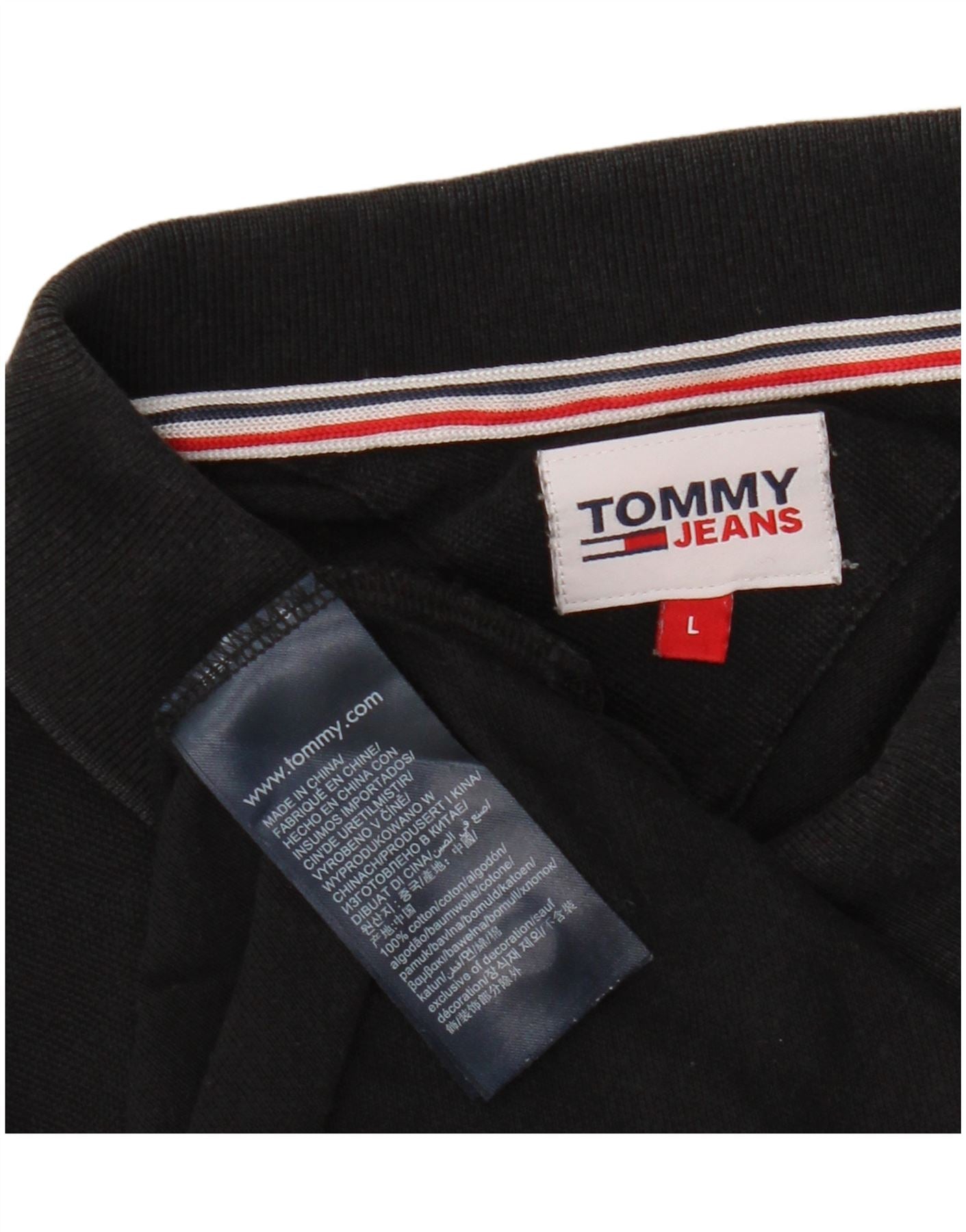 TOMMY HILFIGER Mens Polo Shirt Large Black Cotton