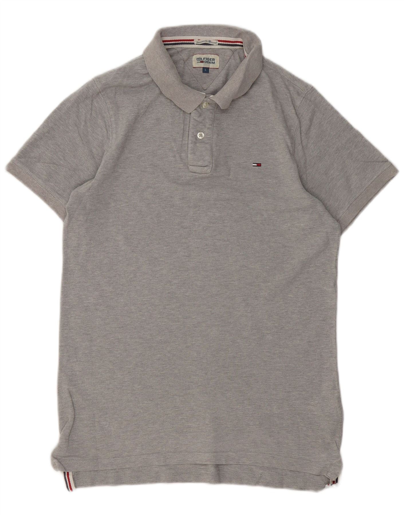 TOMMY HILFIGER Mens Polo Shirt Large Grey Cotton