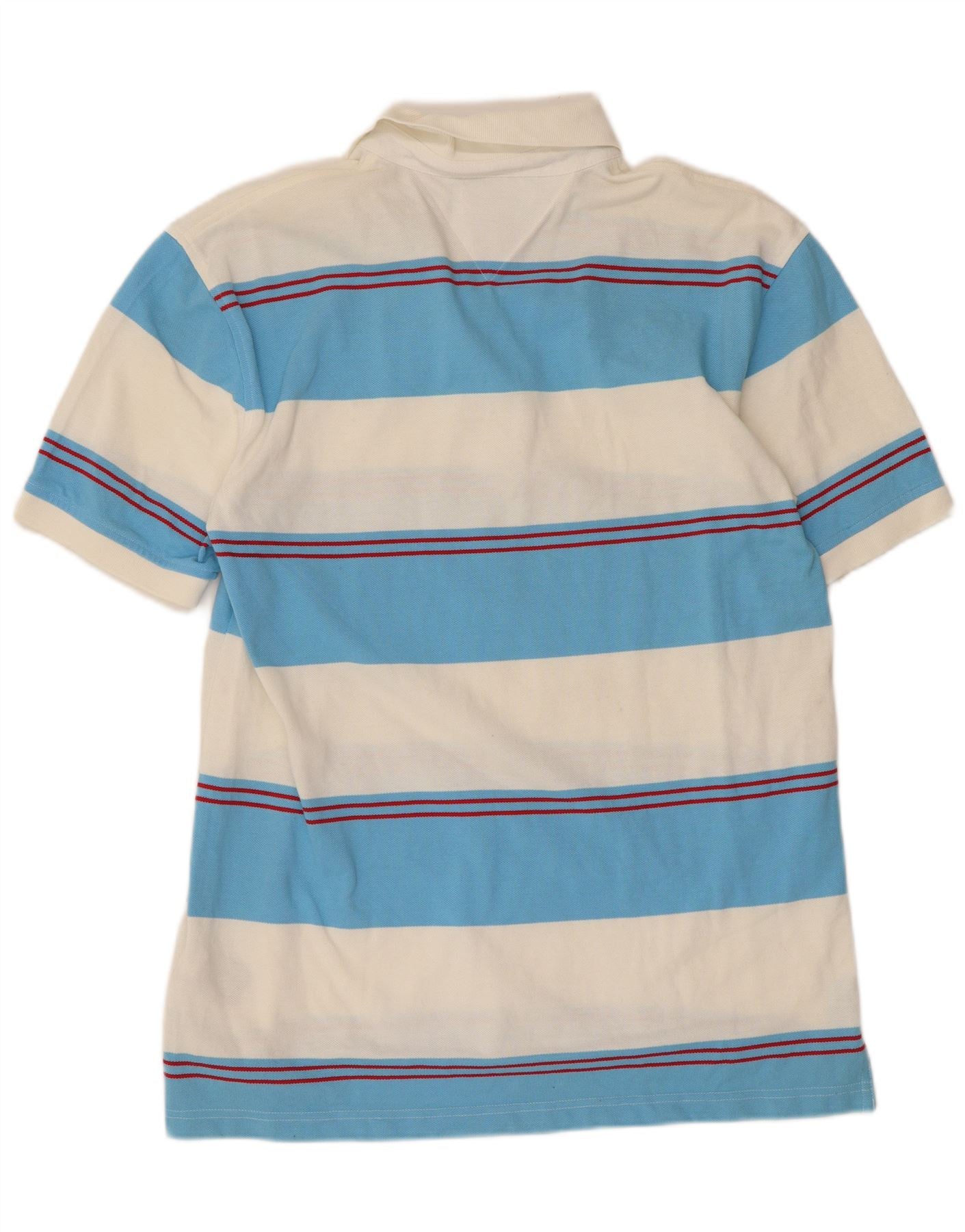 Tommy Hilfiger Mens Polo Shirt Medium Blue Striped Cotton