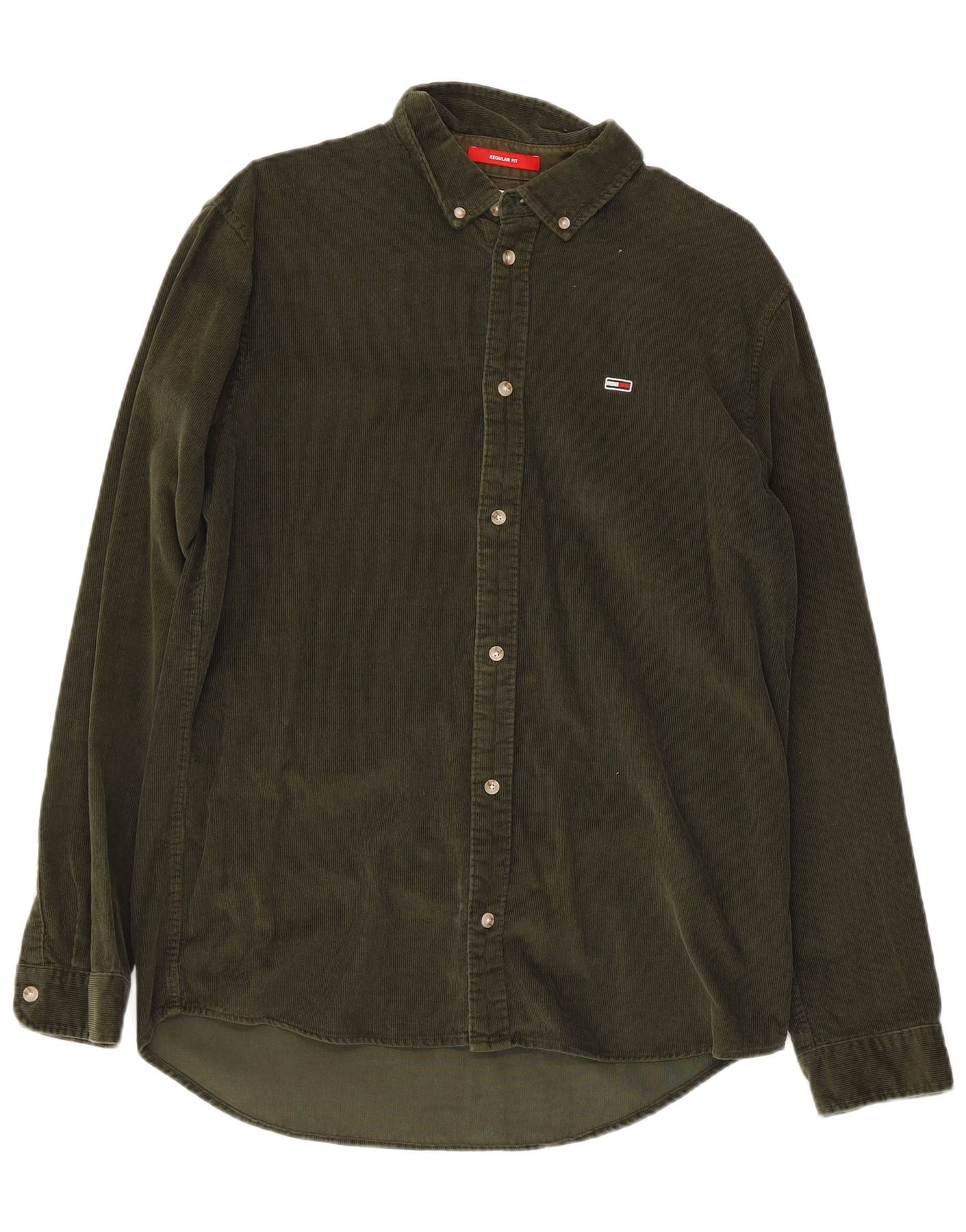TOMMY HILFIGER Mens Regular Fit Corduroy Shirt Medium Khaki Cotton