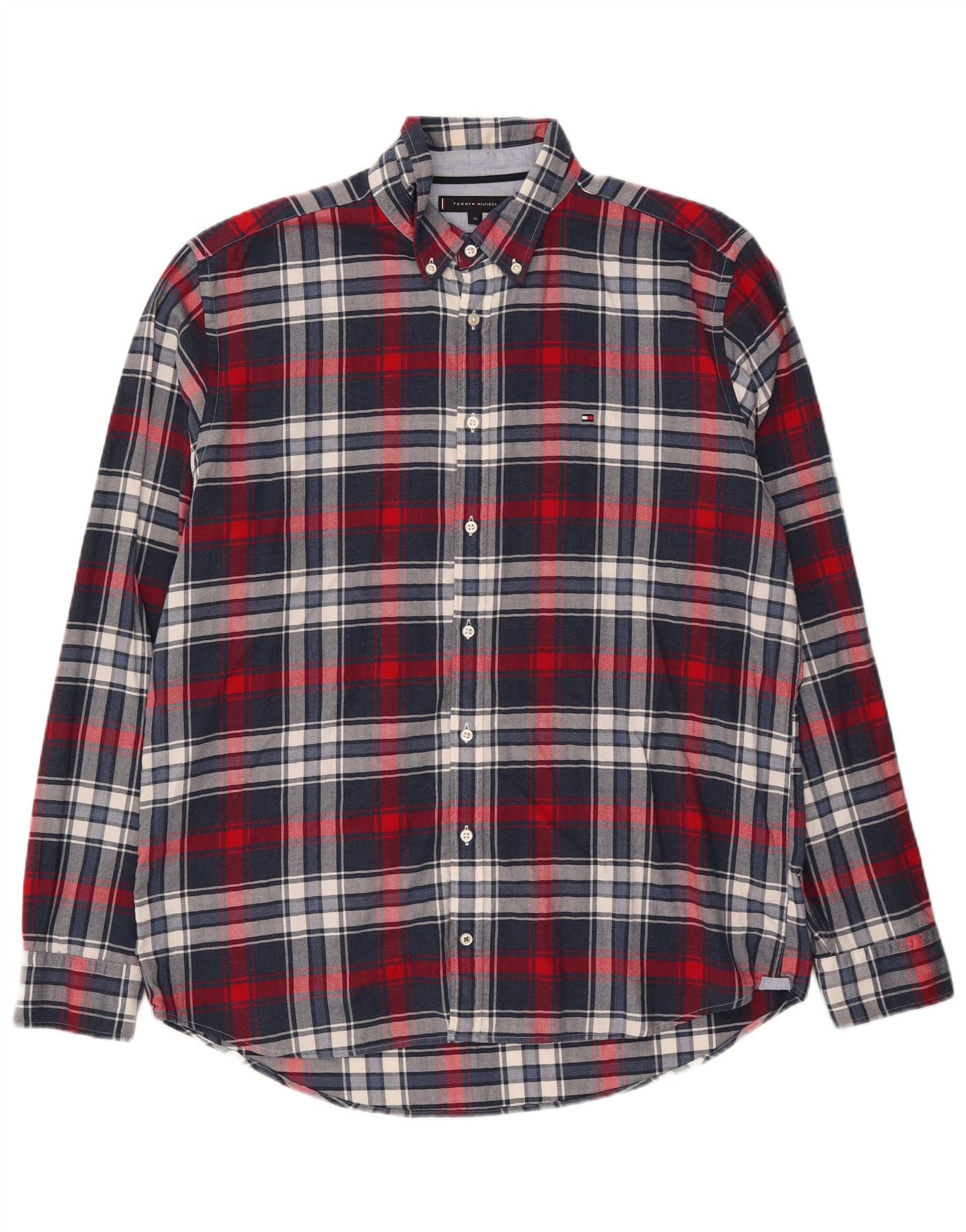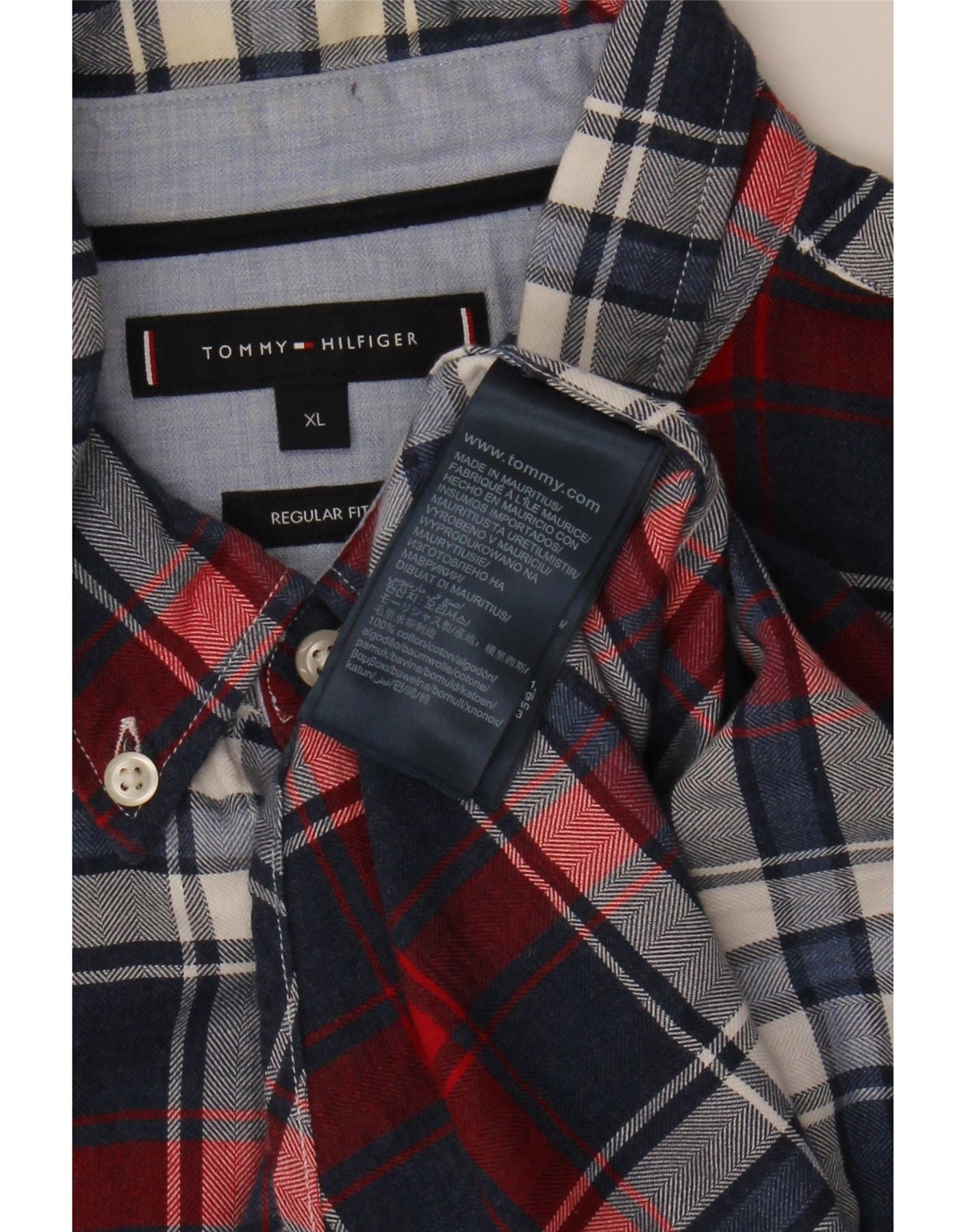 TOMMY HILFIGER Mens Regular Fit Flannel Shirt XL Navy Blue Check Cotton