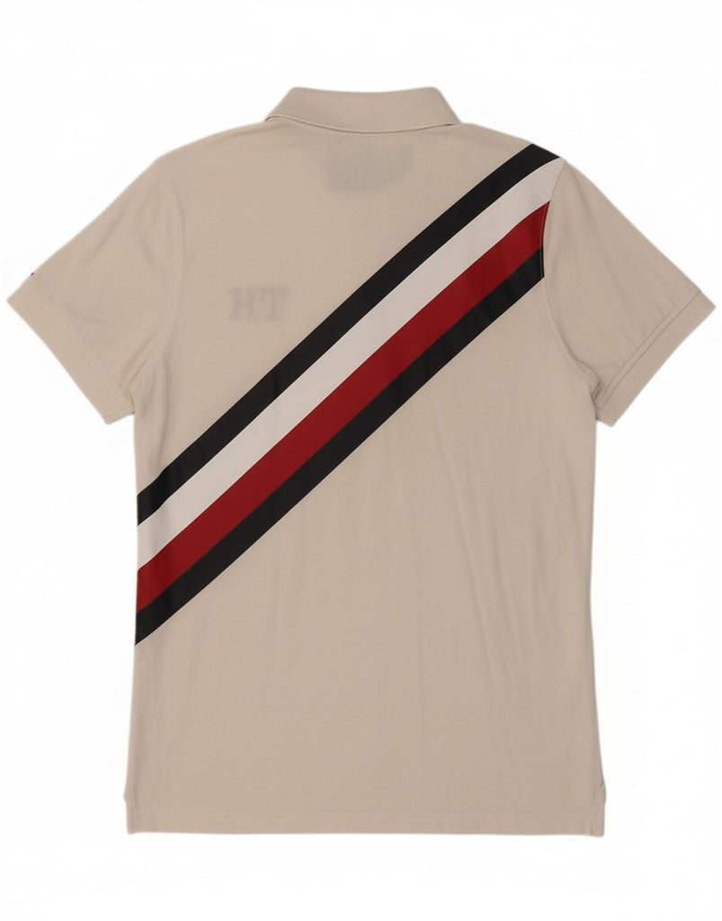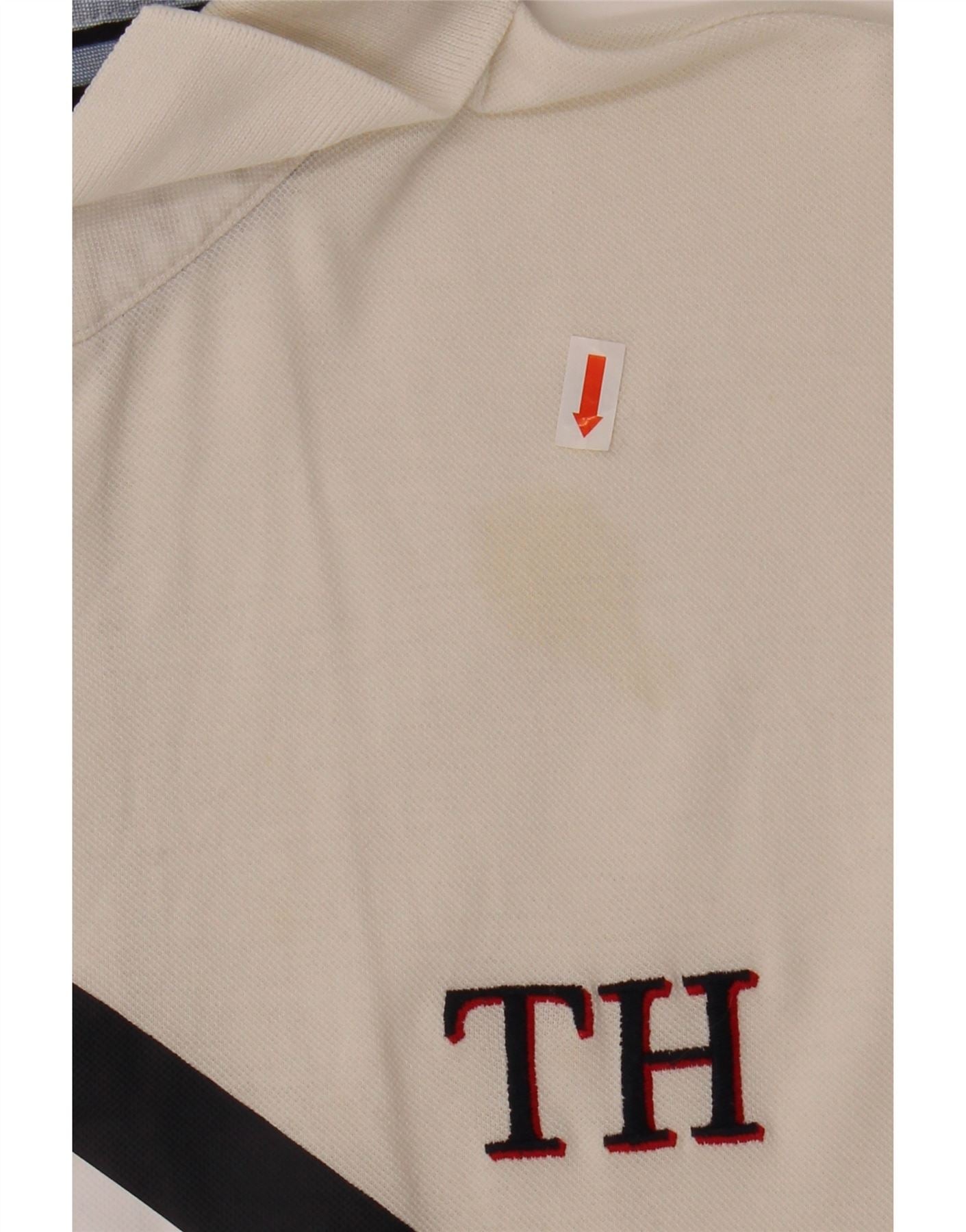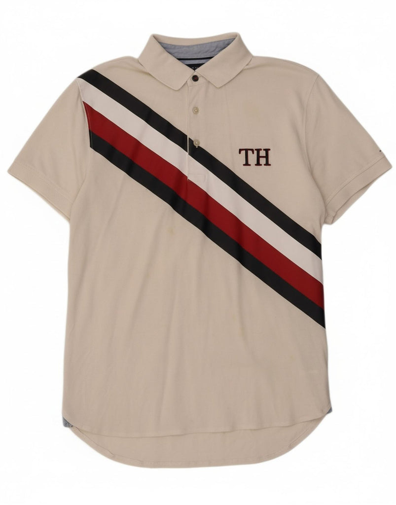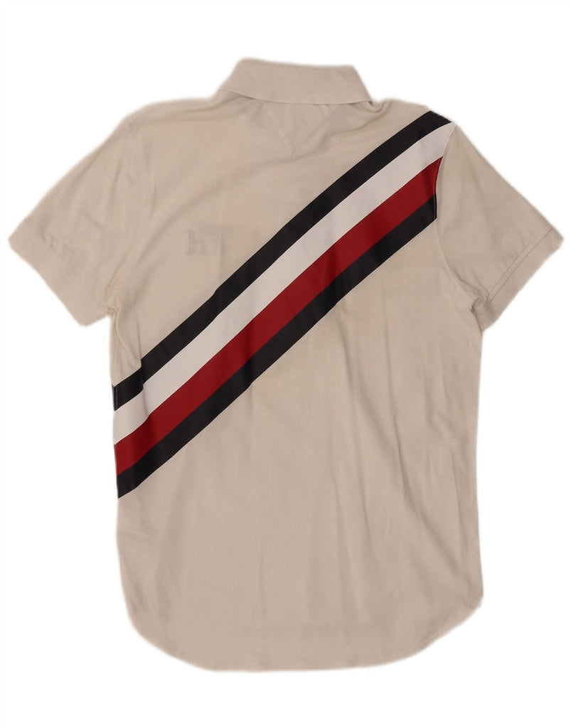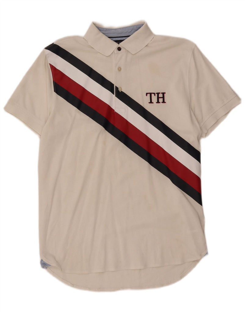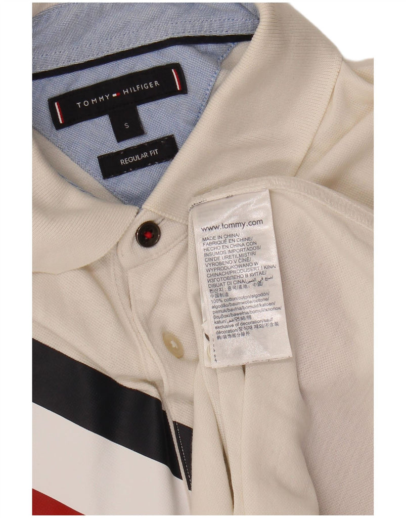 TOMMY HILFIGER Mens Regular Fit Polo Shirt Small White Striped Cotton