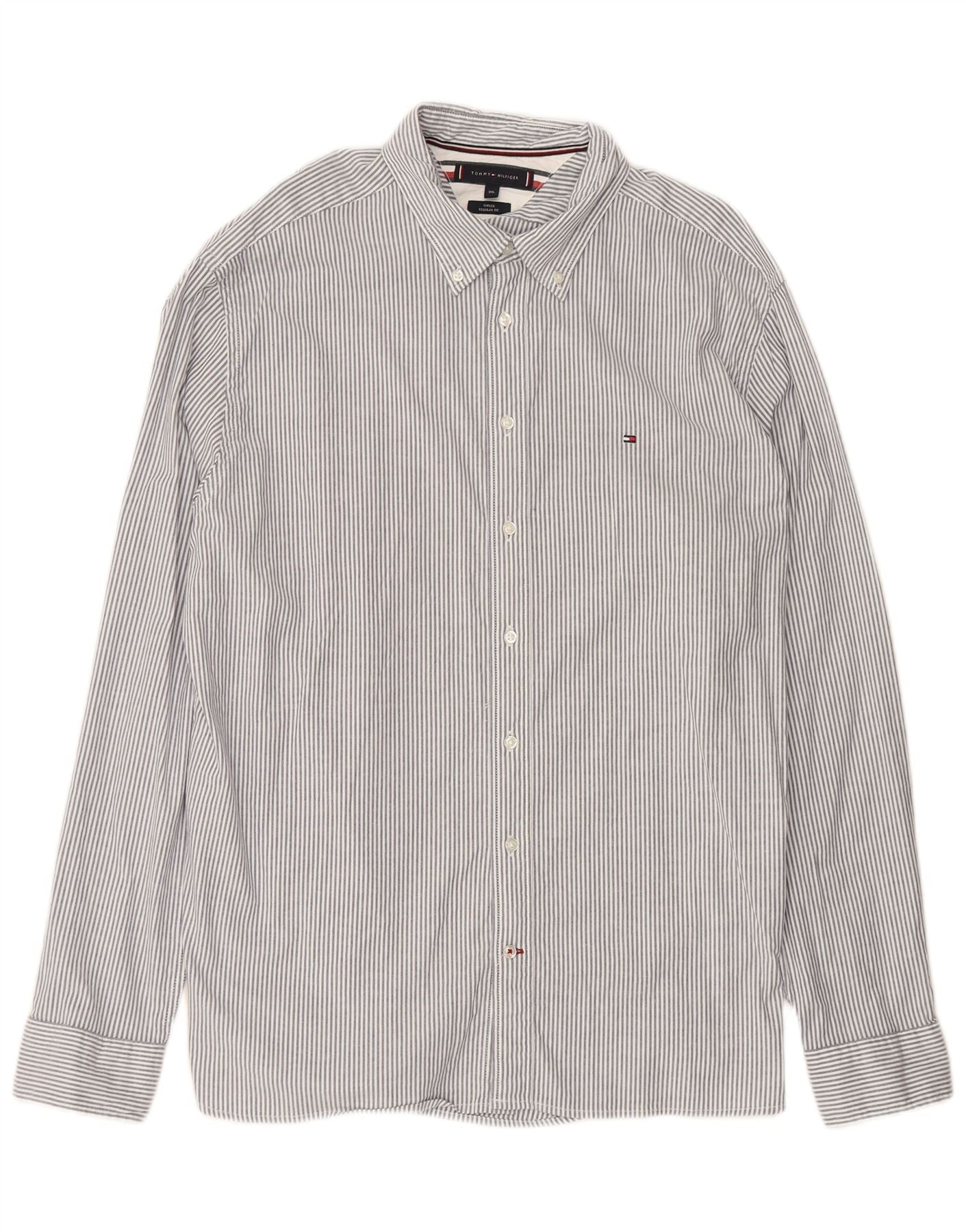 TOMMY HILFIGER Mens Regular Fit Shirt 2XL Grey Pinstripe Cotton