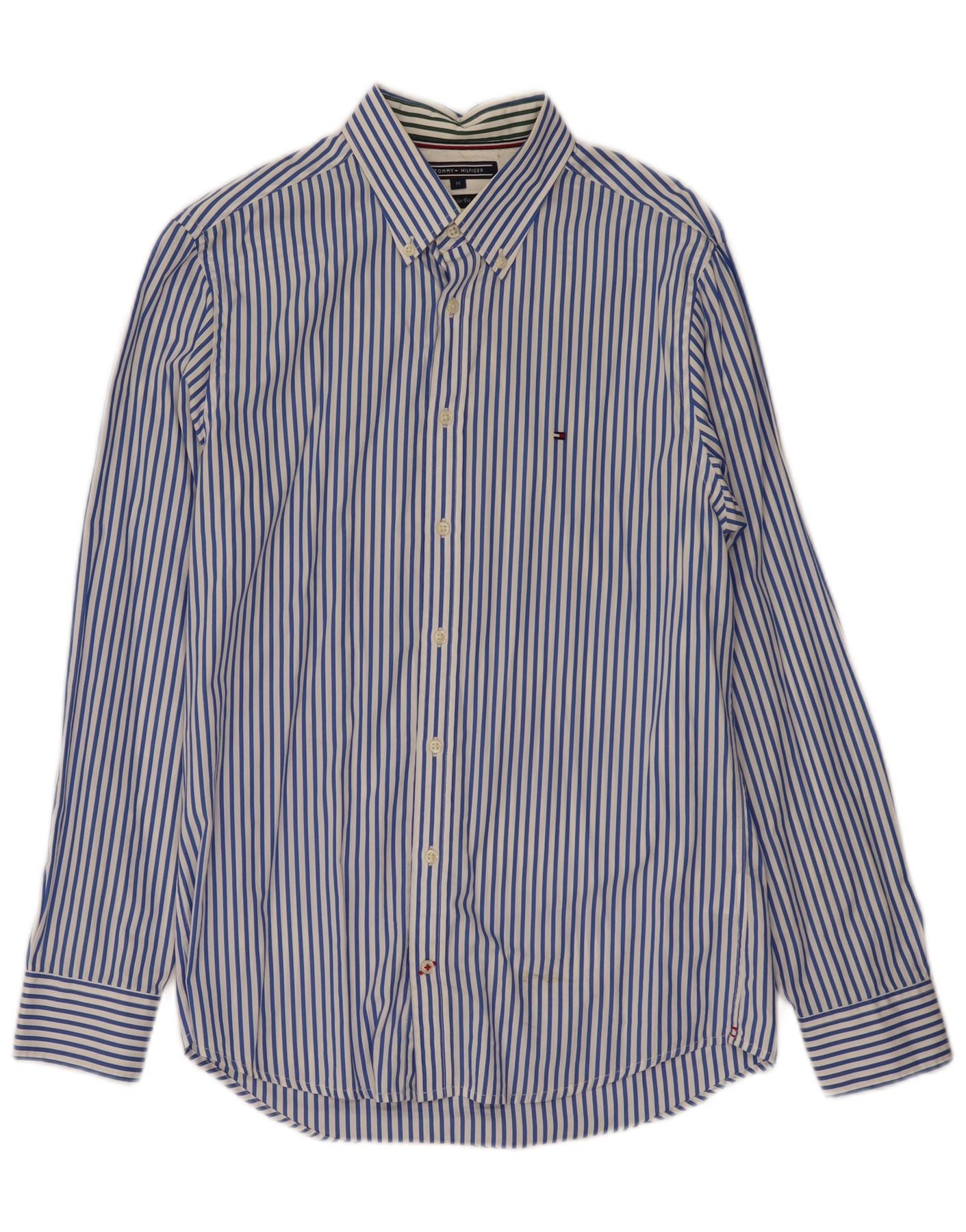 TOMMY HILFIGER Mens Regular Fit Shirt Medium Blue Pinstripe Cotton