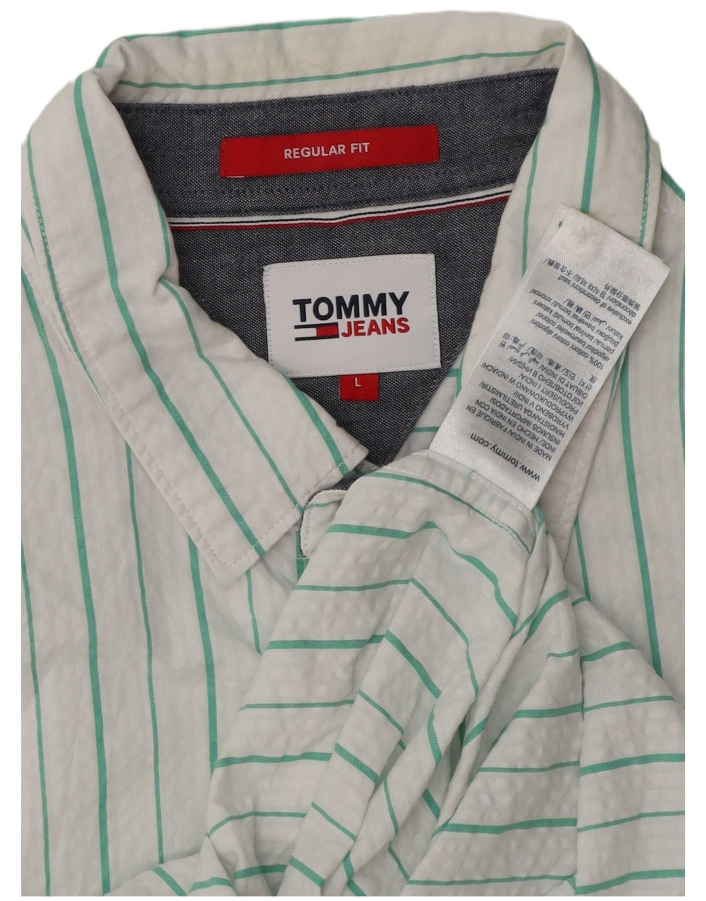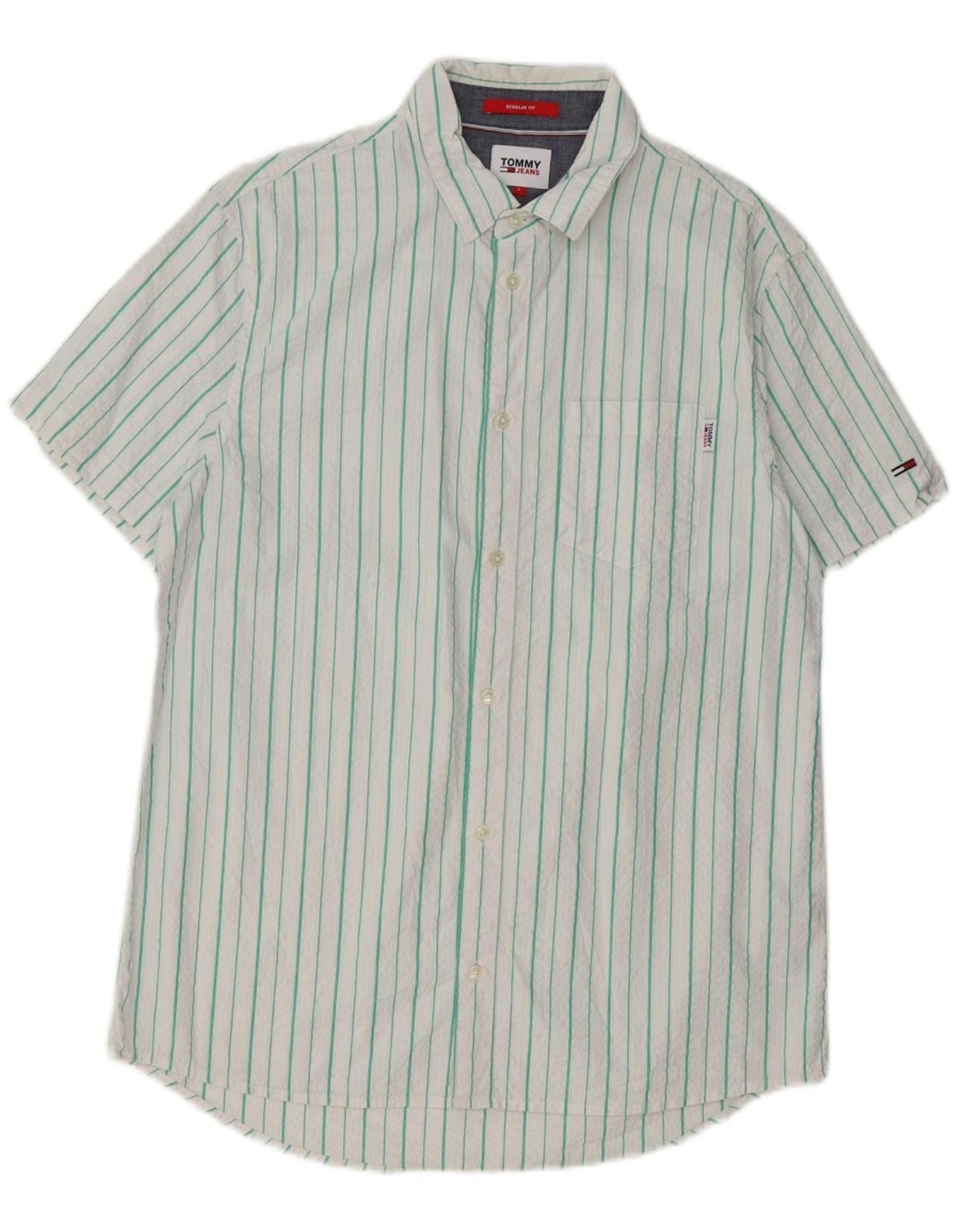 TOMMY HILFIGER Mens Regular Fit Short Sleeve Shirt Large White Striped