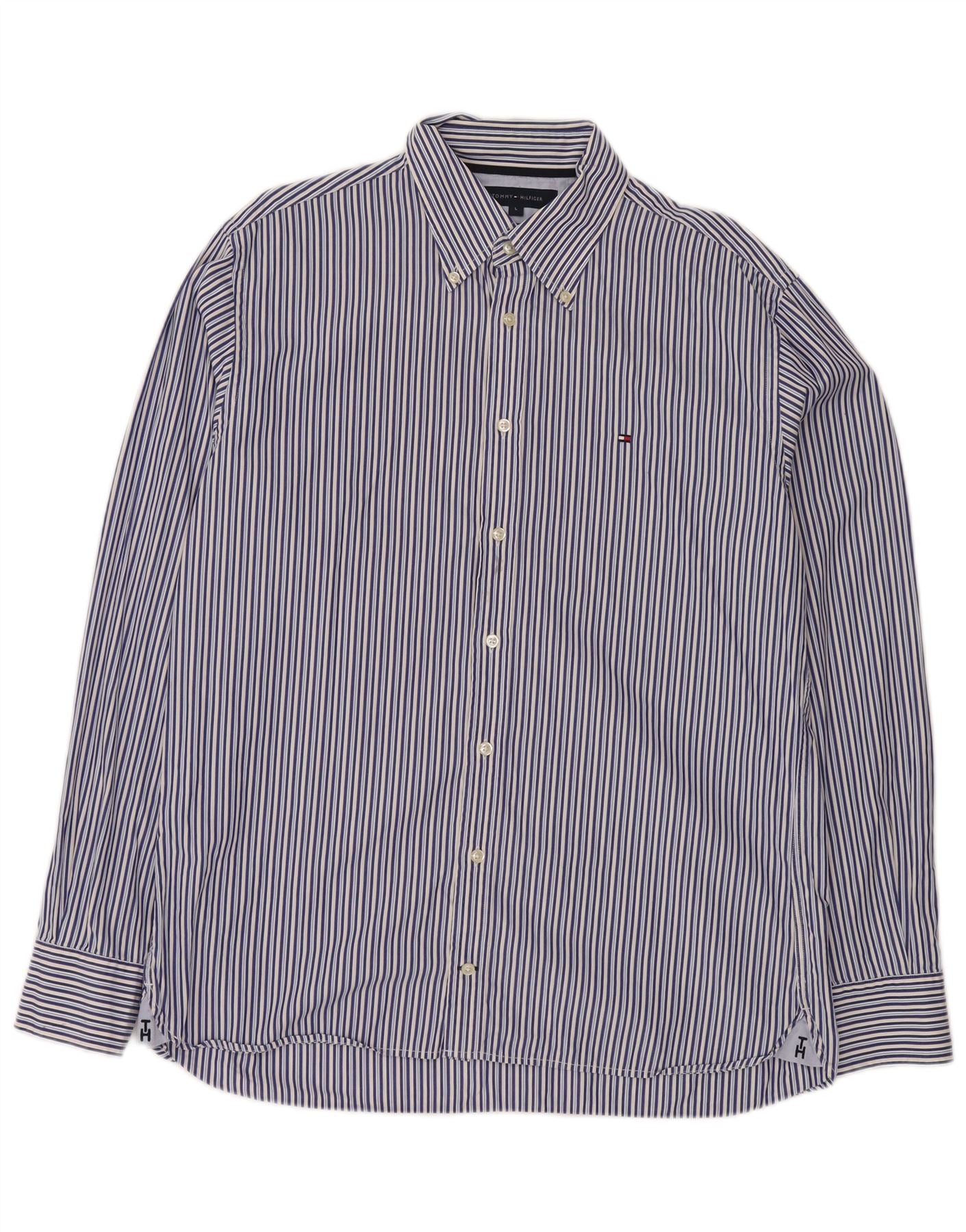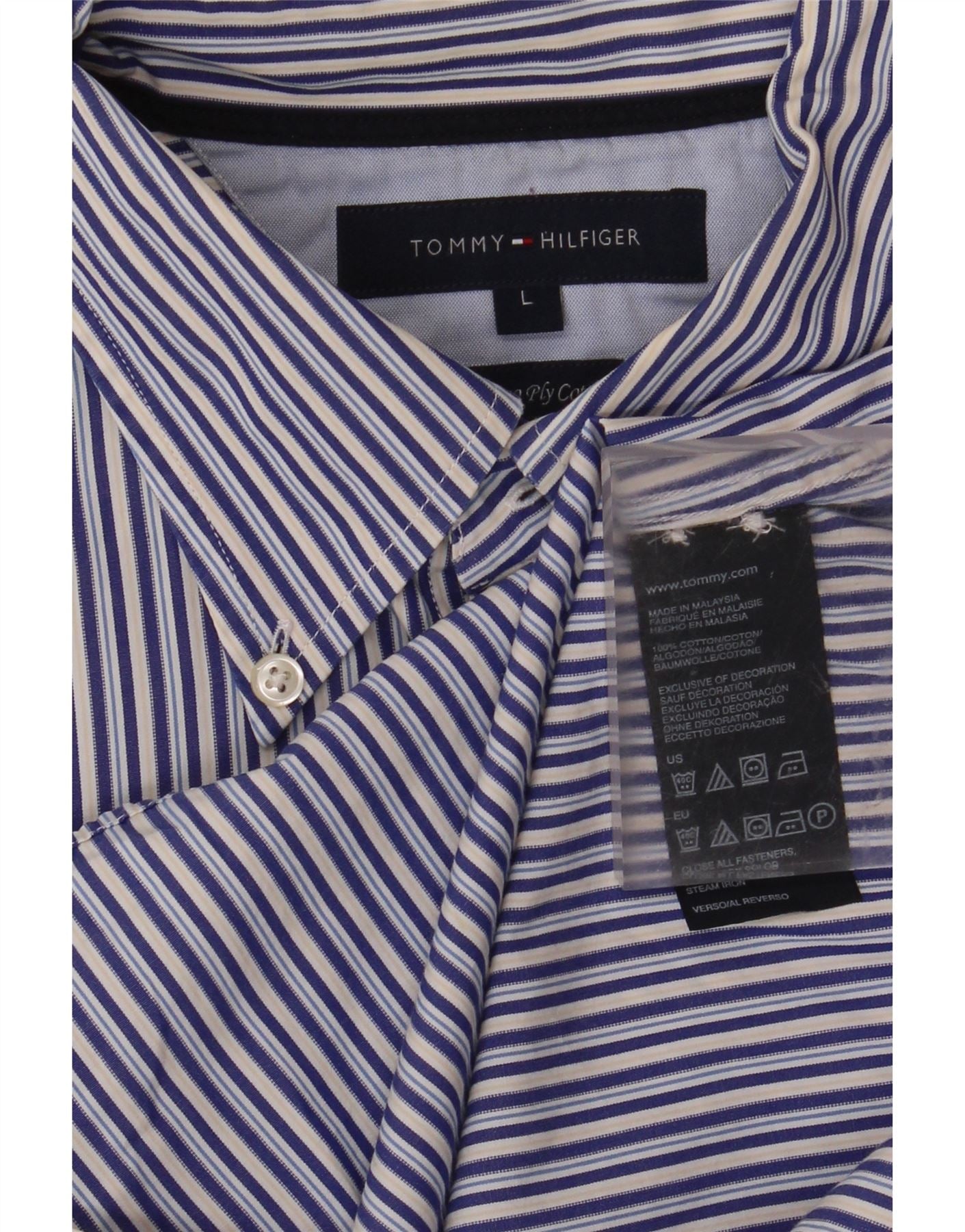 Tommy Hilfiger Mens Shirt Large Blue Striped Cotton