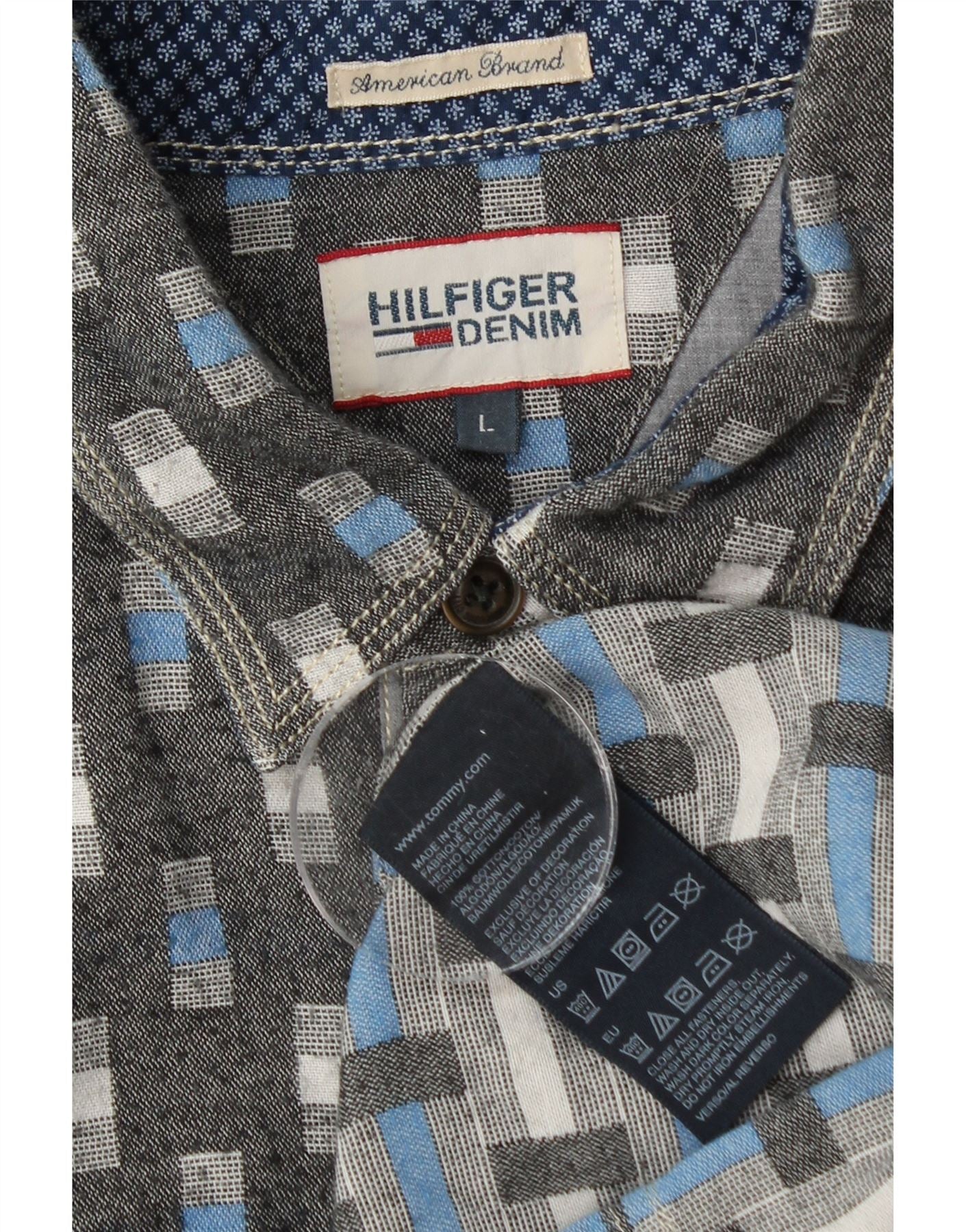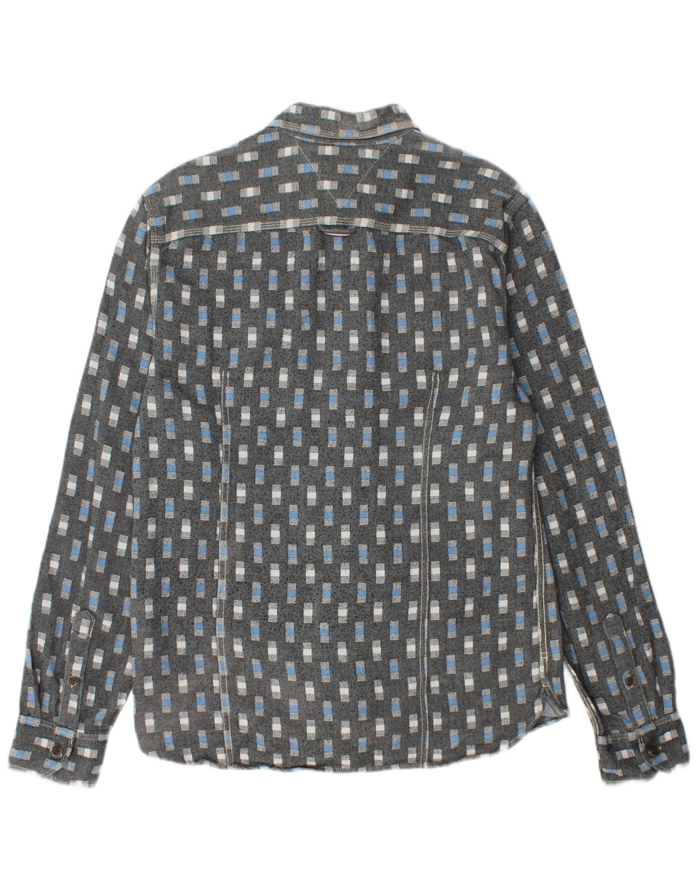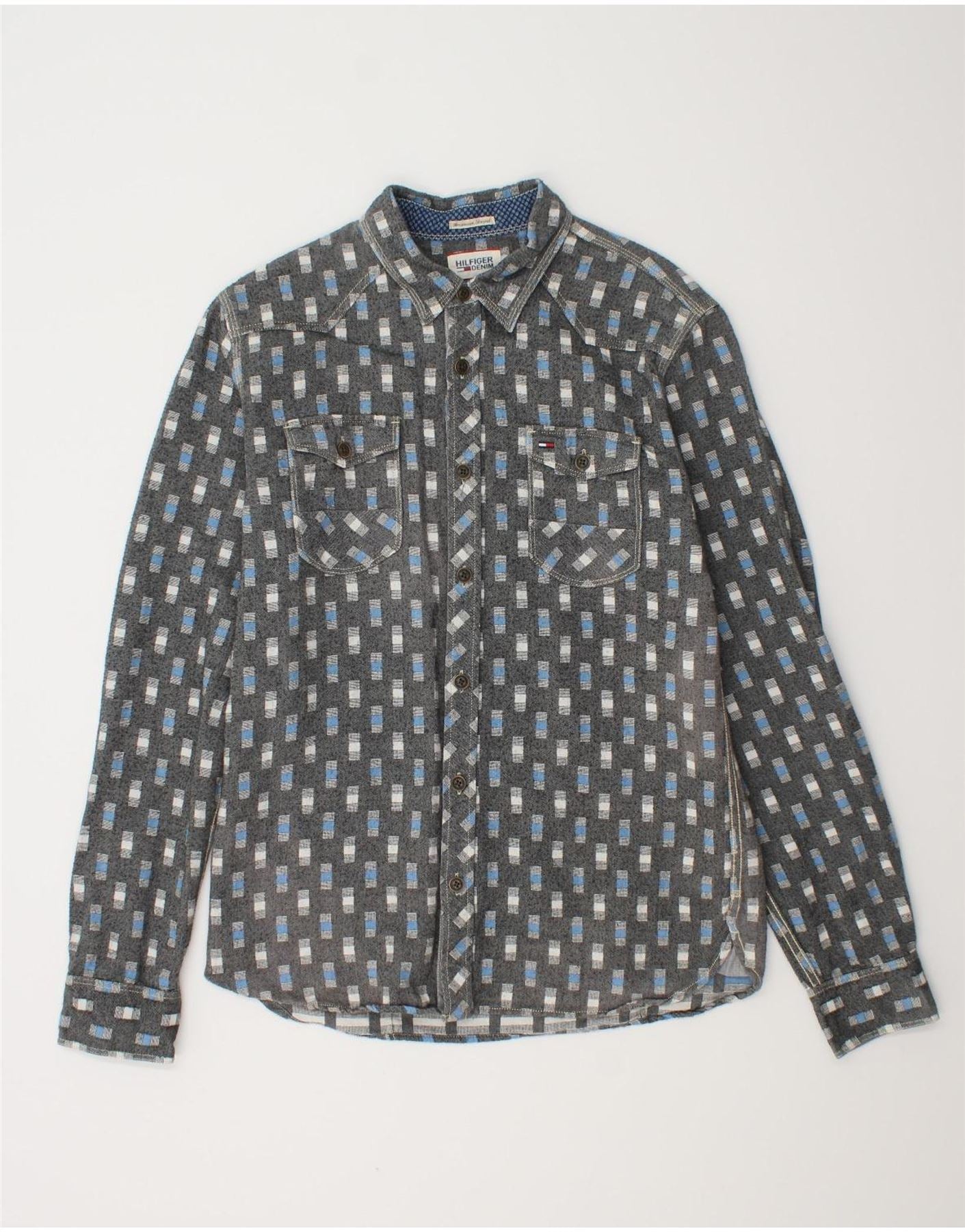 TOMMY HILFIGER Mens Shirt Large Grey Geometric Cotton