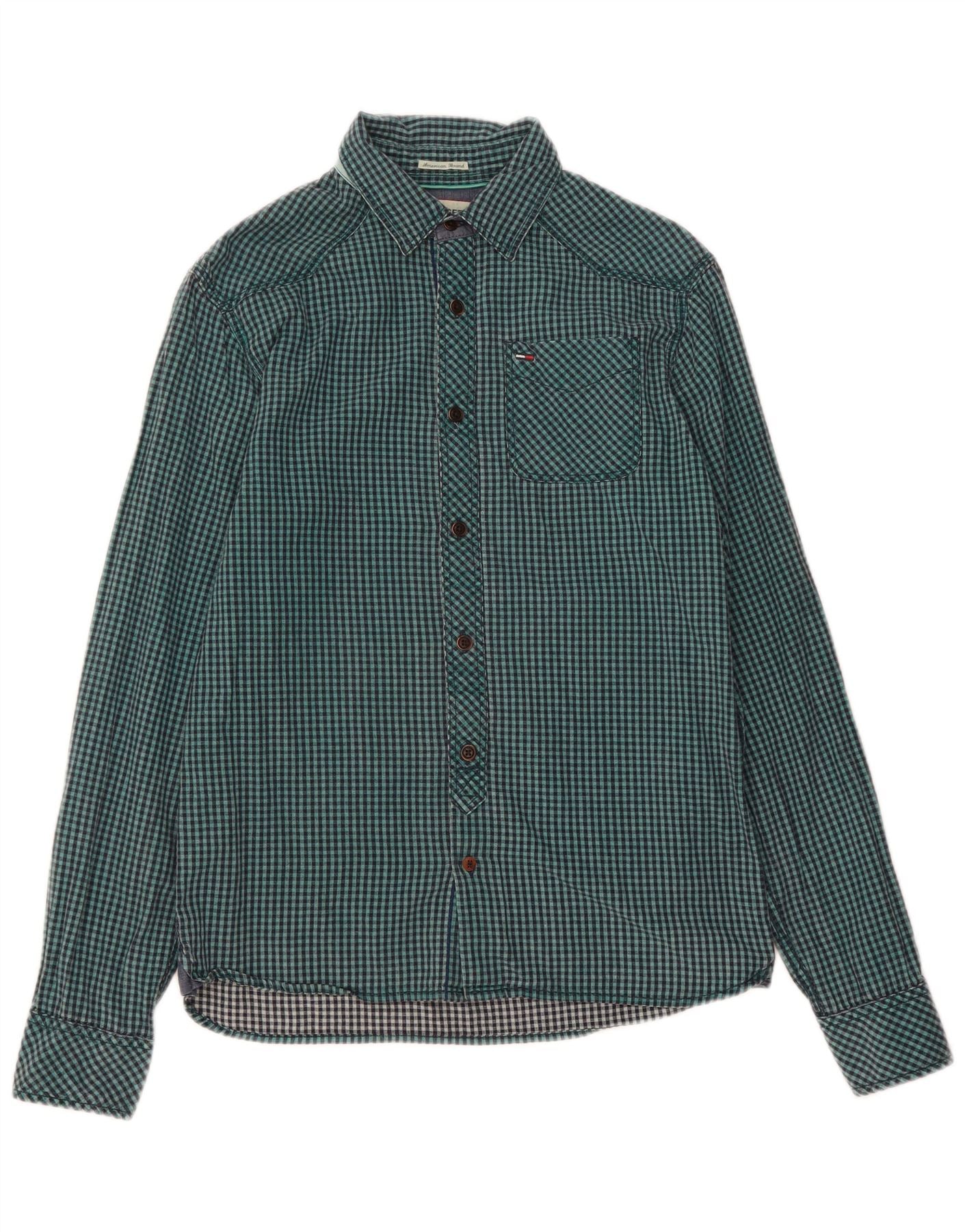 TOMMY HILFIGER Mens Shirt Medium Green Gingham Cotton