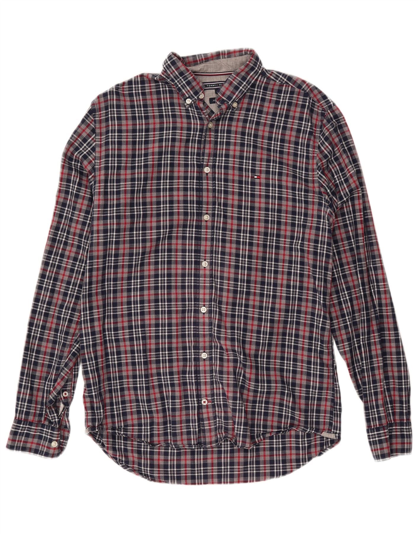 TOMMY HILFIGER Mens Shirt Medium Navy Blue Check Cotton