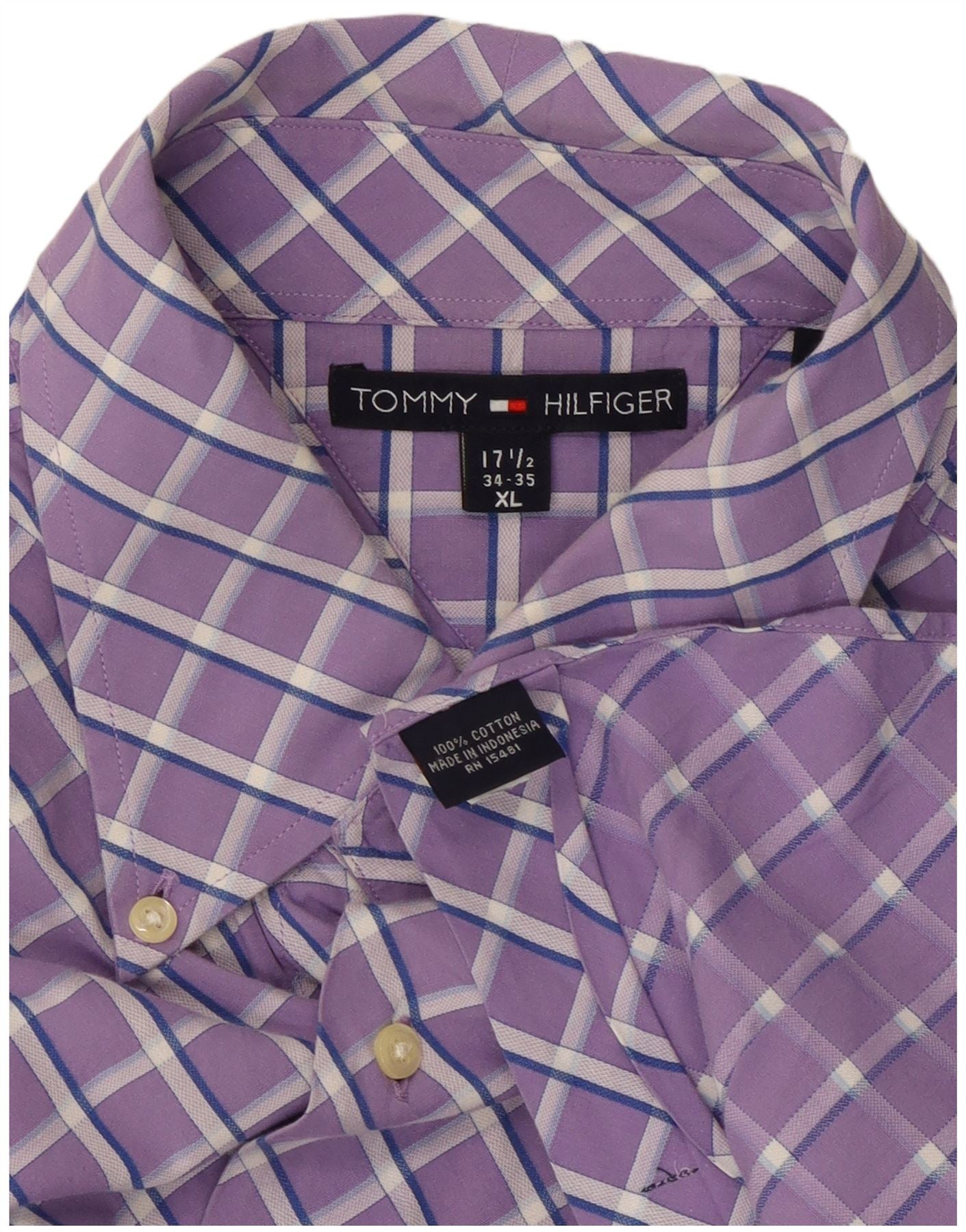 TOMMY HILFIGER Mens Shirt Size 17 1/2 XL Purple Check Cotton