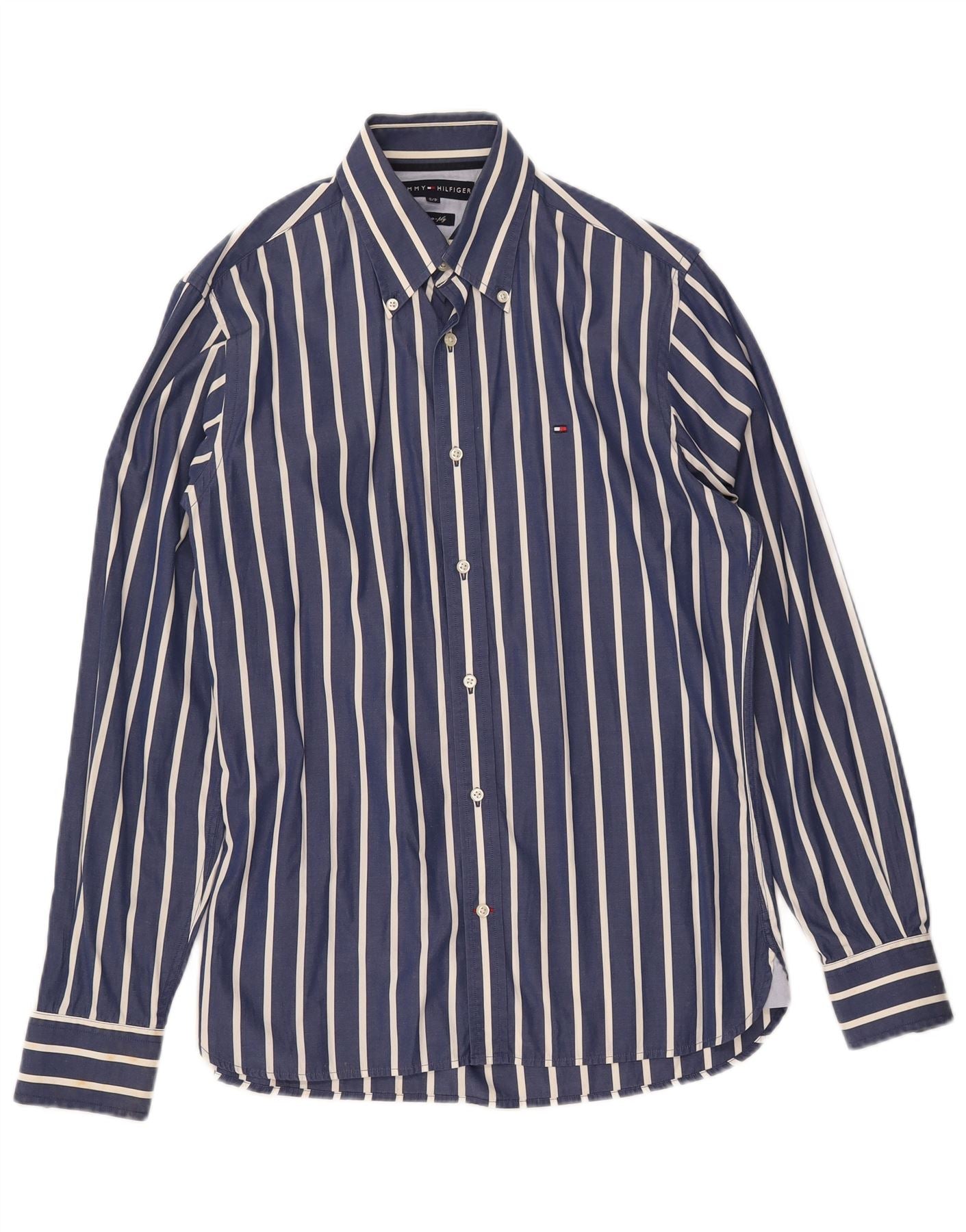 TOMMY HILFIGER Mens Shirt Small Navy Blue Pinstripe Cotton 80s