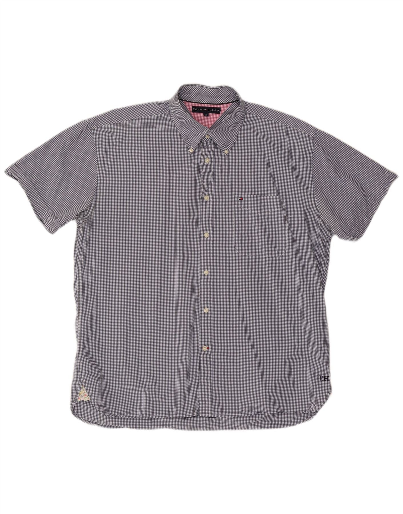 TOMMY HILFIGER Mens Short Sleeve Shirt 2XL Blue Gingham Cotton