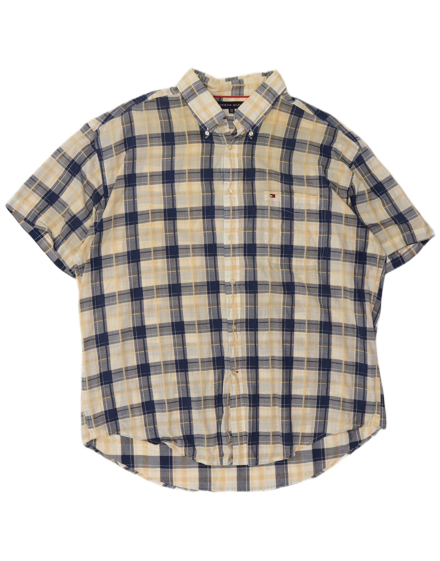 TOMMY HILFIGER Mens Short Sleeve Shirt 2XL Navy Blue Check Cotton