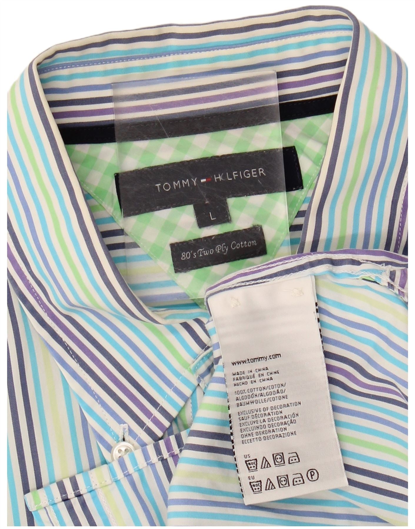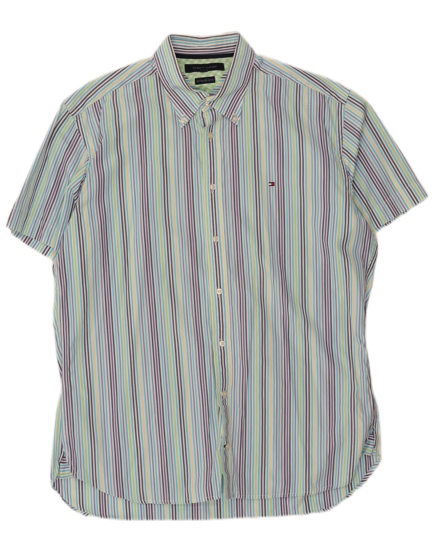 TOMMY HILFIGER Mens Short Sleeve Shirt Large Multicoloured Striped Cotton
