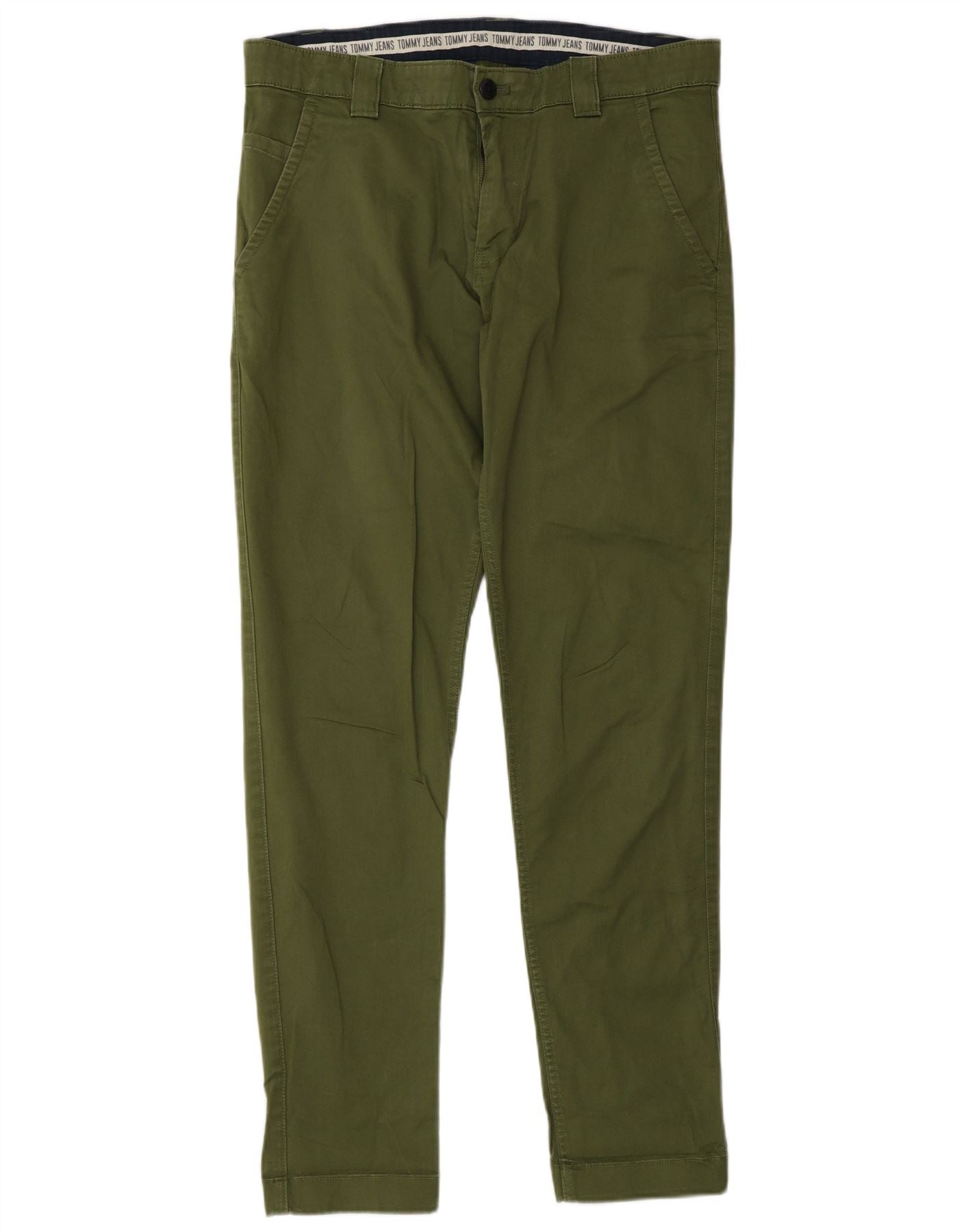 TOMMY HILFIGER Mens Slim Chino Trousers W32 L32 Green Cotton