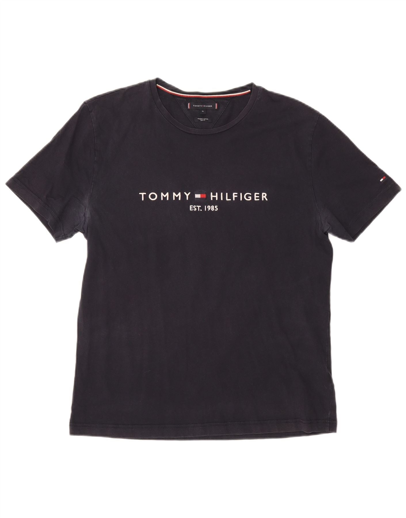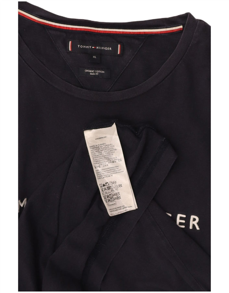 TOMMY HILFIGER Mens Slim Fit Graphic T-Shirt Top XL Navy Blue Cotton