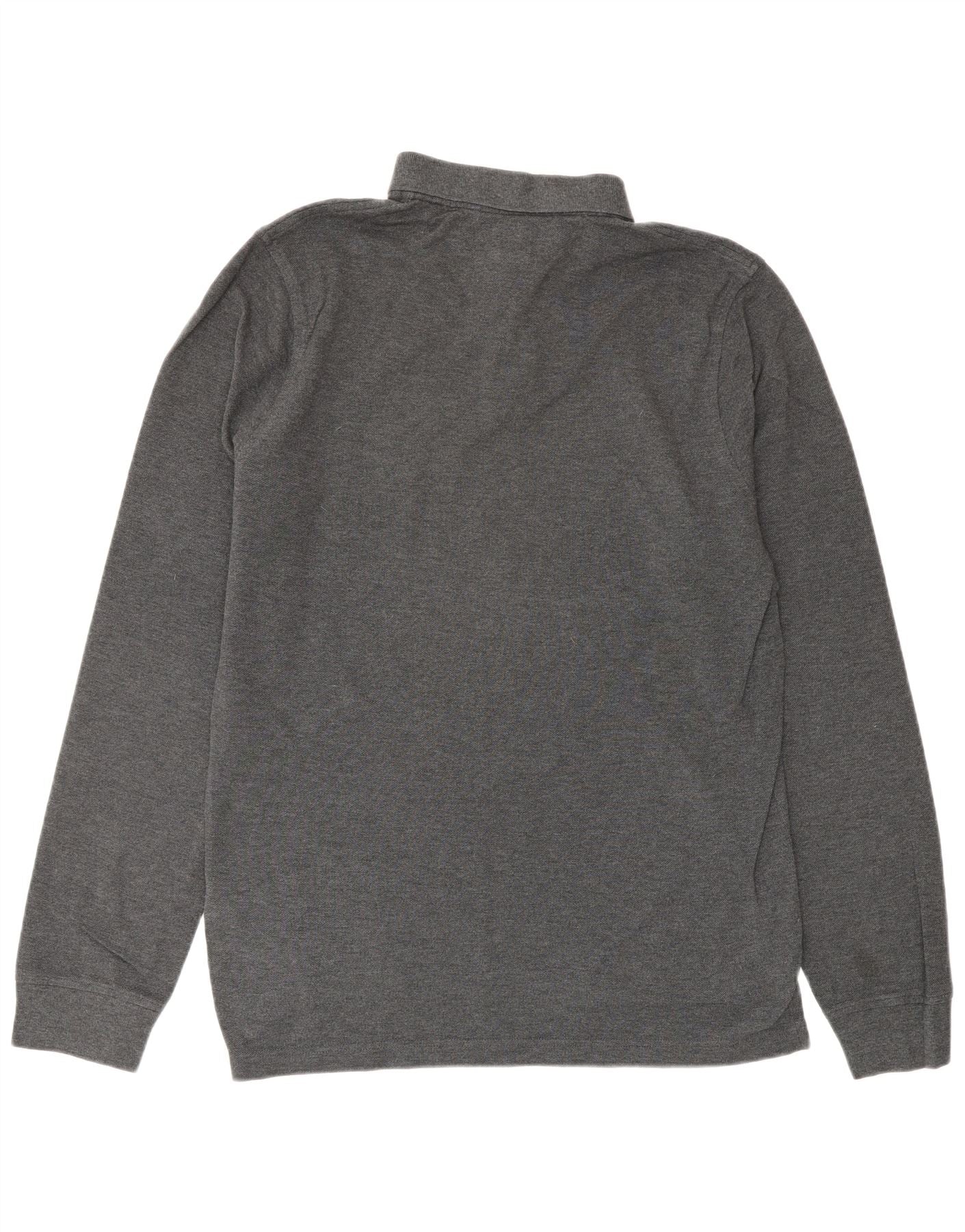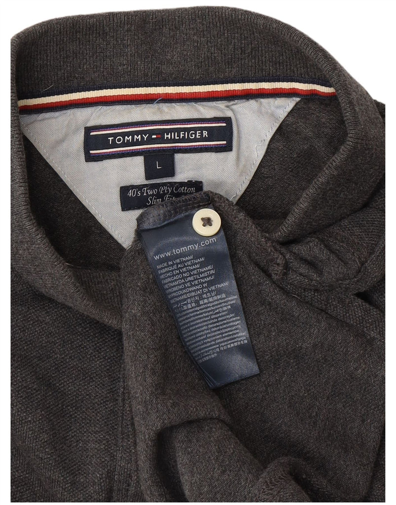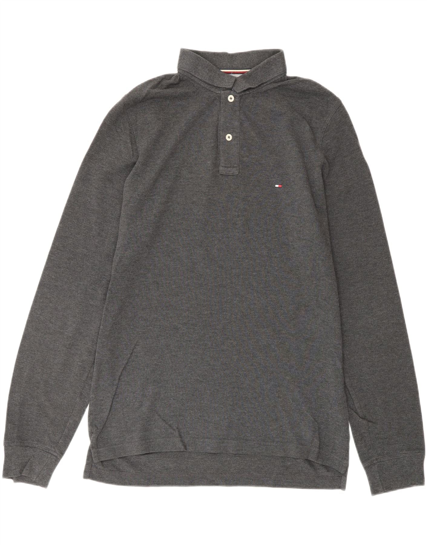 TOMMY HILFIGER Mens Slim Fit Long Sleeve Polo Shirt Large Grey Cotton