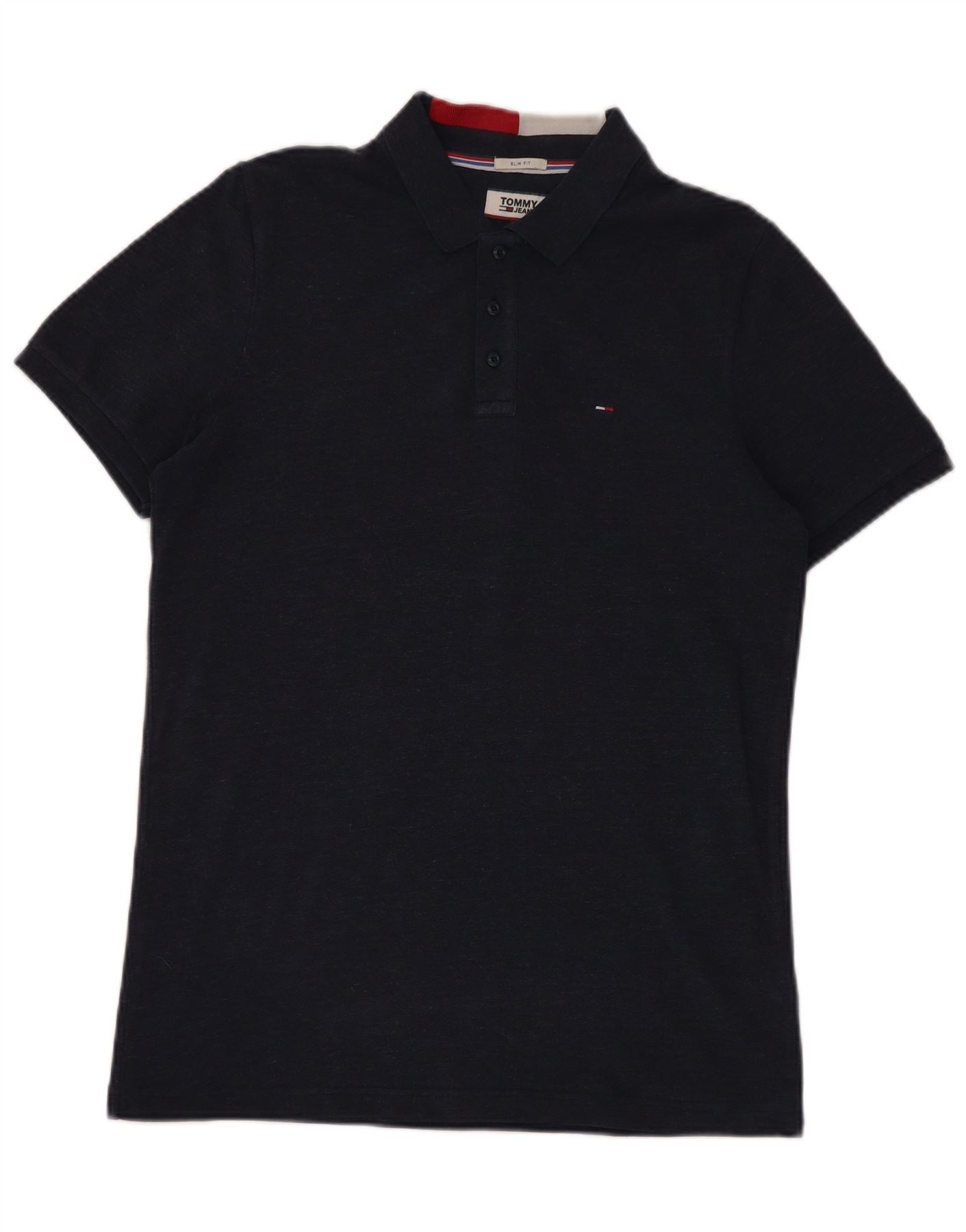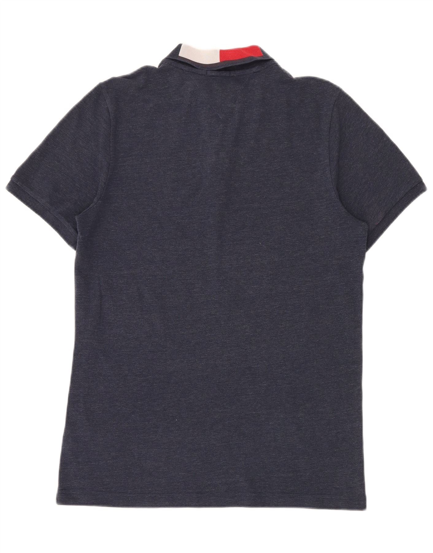 TOMMY HILFIGER Mens Slim Fit Polo Shirt Large Navy Blue Cotton