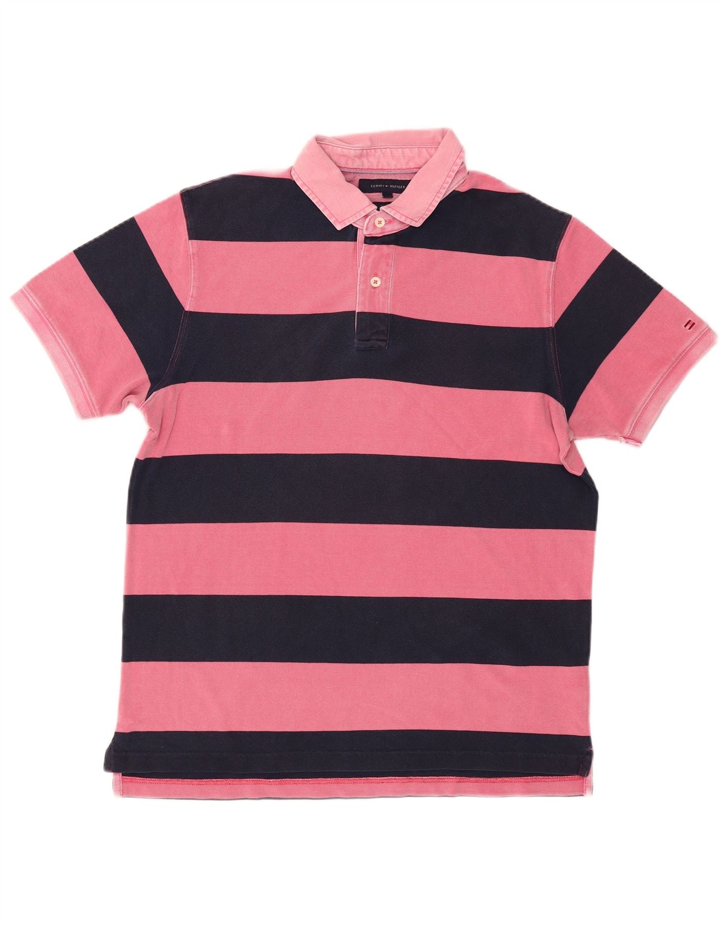 TOMMY HILFIGER Mens Slim Fit Rugby Polo Shirt XL Pink Striped
