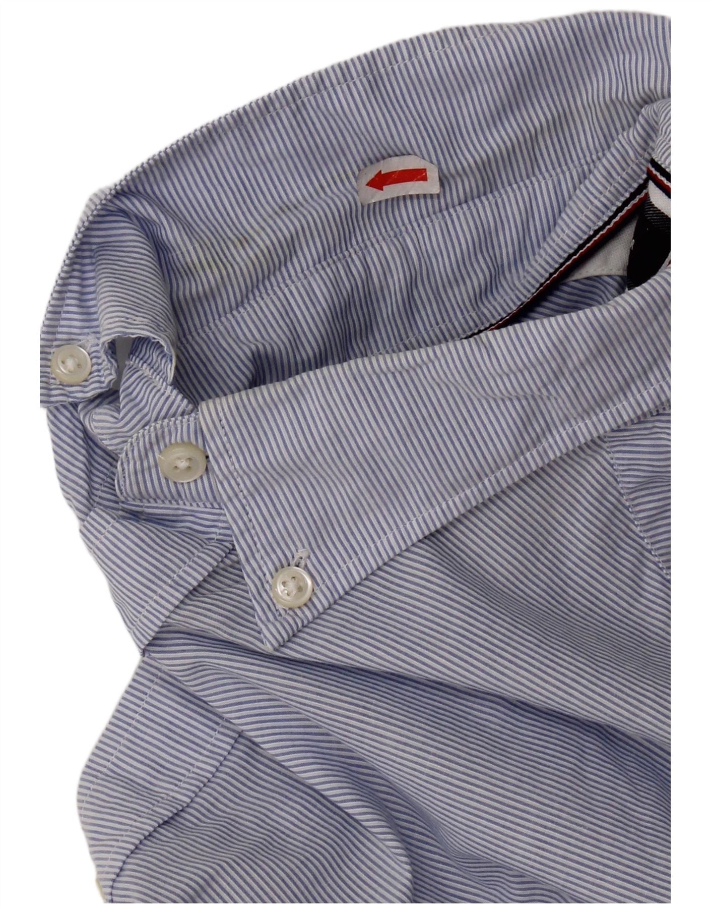 Tommy Hilfiger Mens Slim Fit Shirt Medium Blue Pinstripe Cotton
