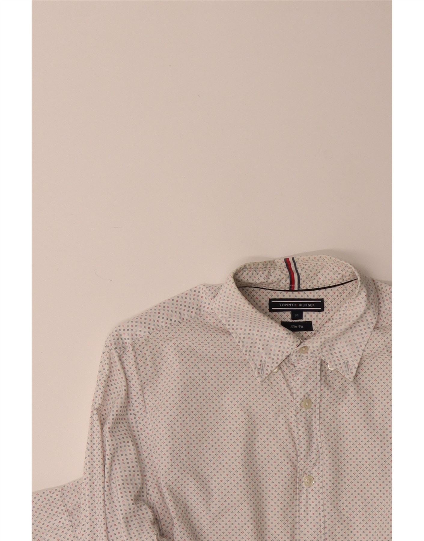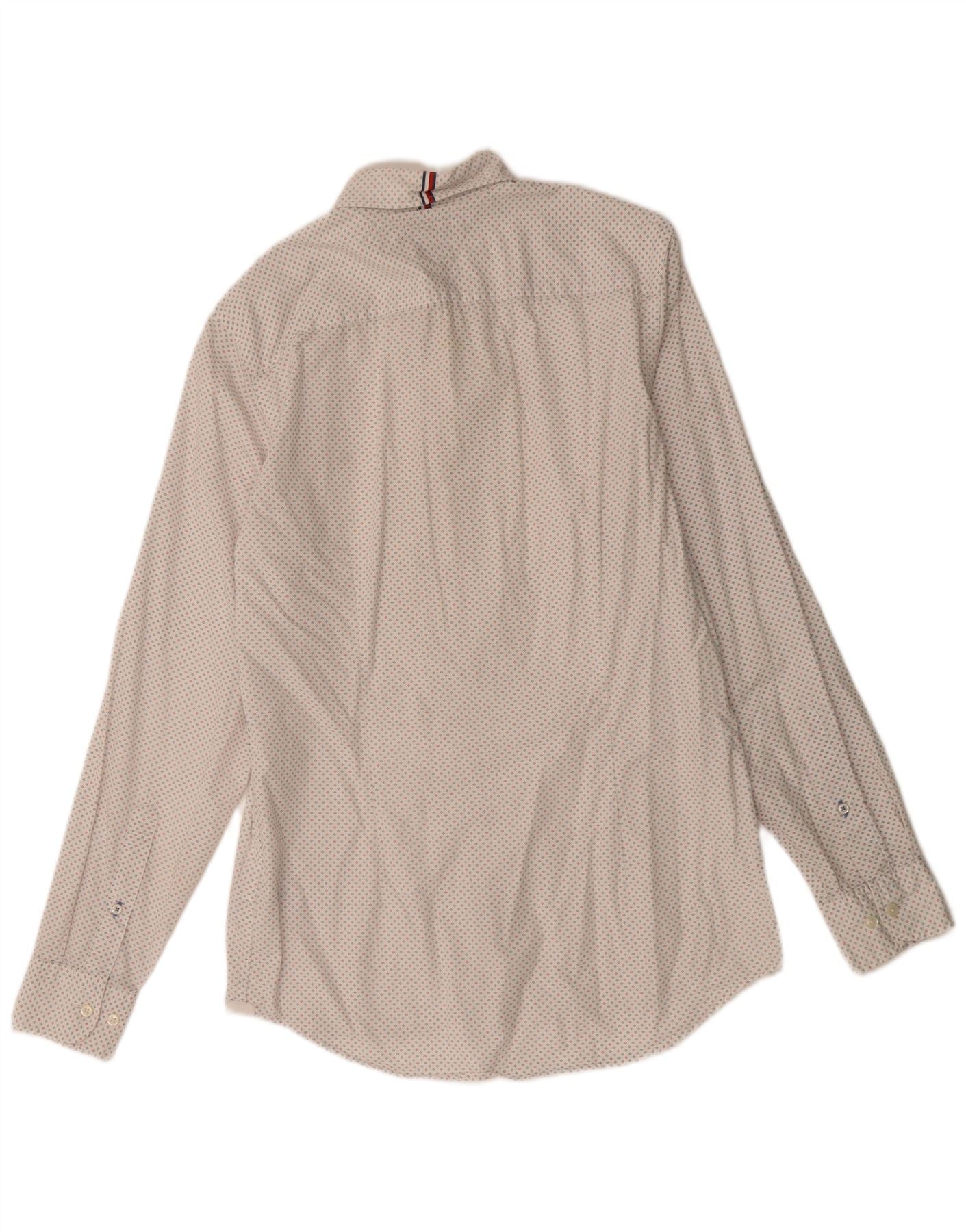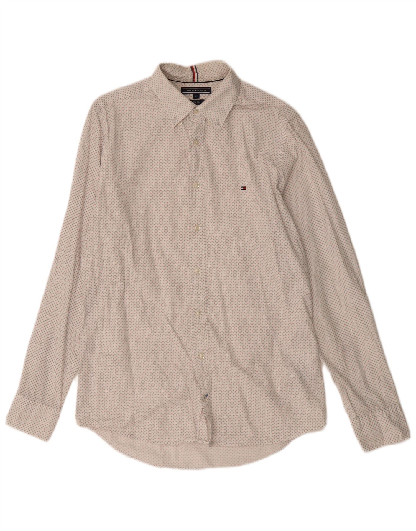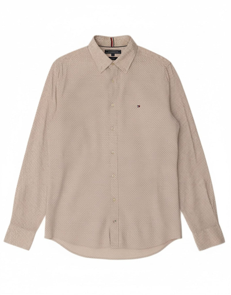 TOMMY HILFIGER Mens Slim Fit Shirt Medium Off White Spotted Cotton