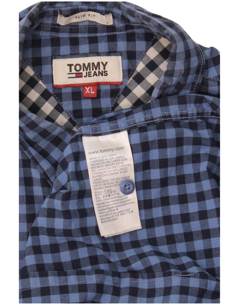 TOMMY HILFIGER Mens Slim Fit Shirt XL Blue Check Cotton