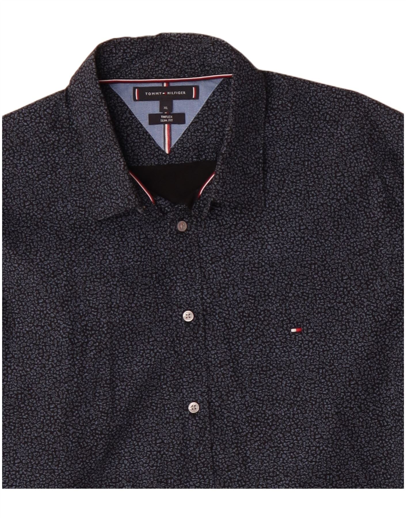 TOMMY HILFIGER Mens Slim Fit Shirt XL Navy Blue Spotted Cotton