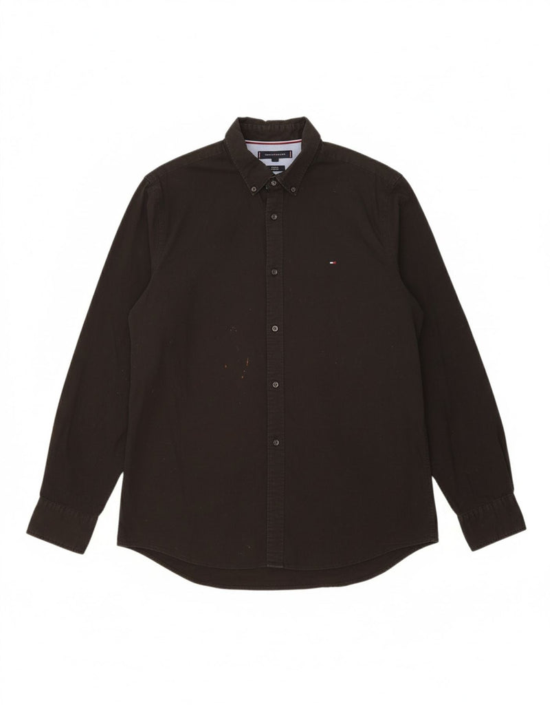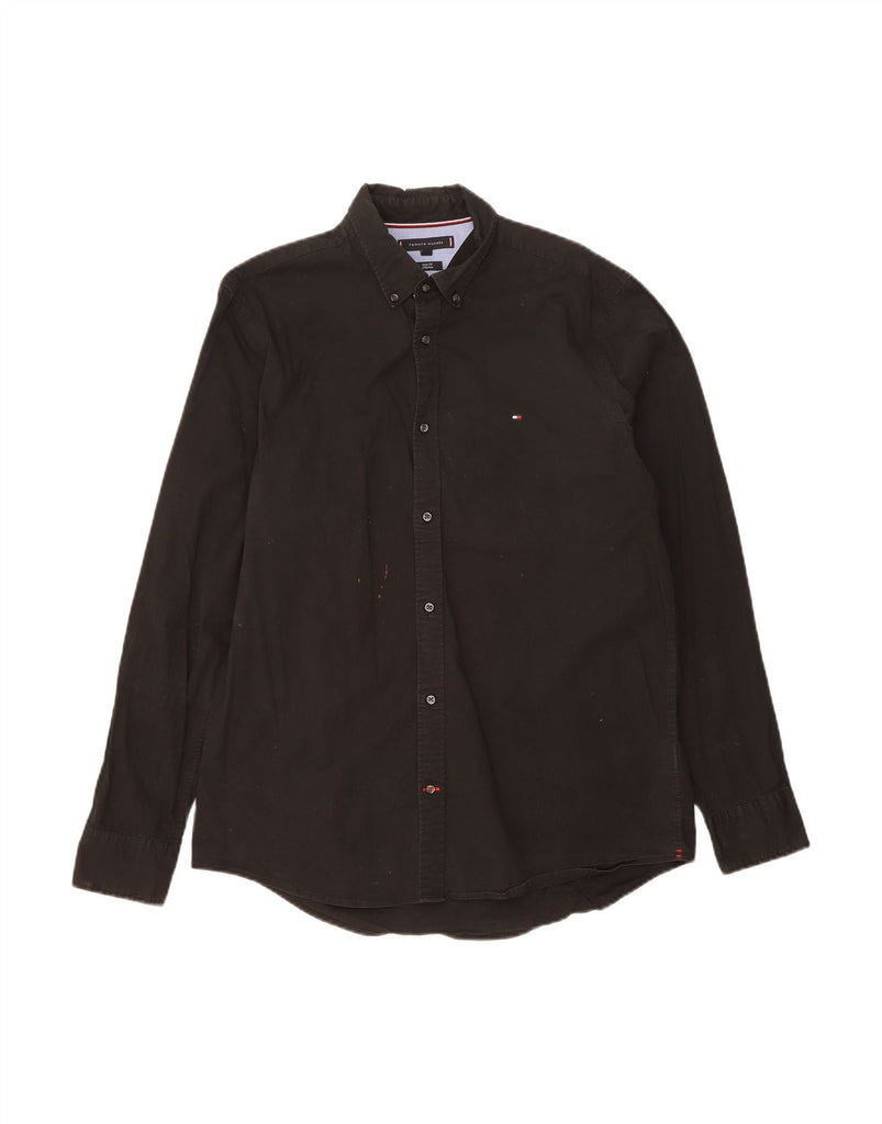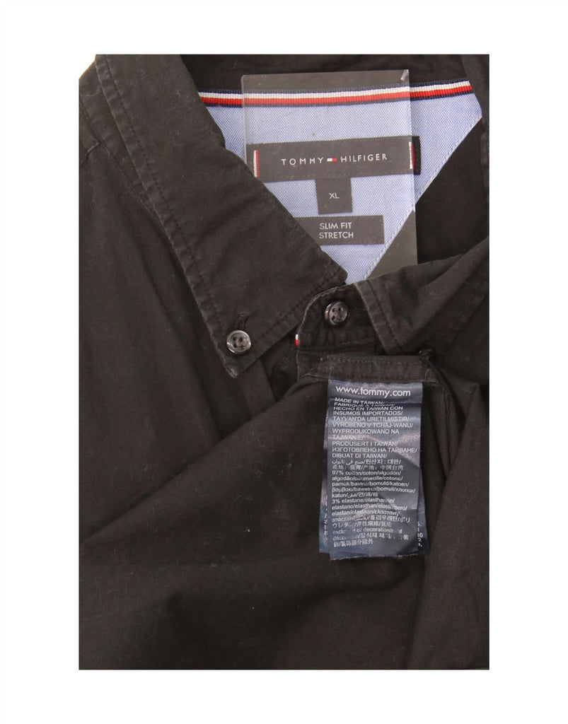 TOMMY HILFIGER Mens Stretch Slim Fit Shirt XL Black Cotton