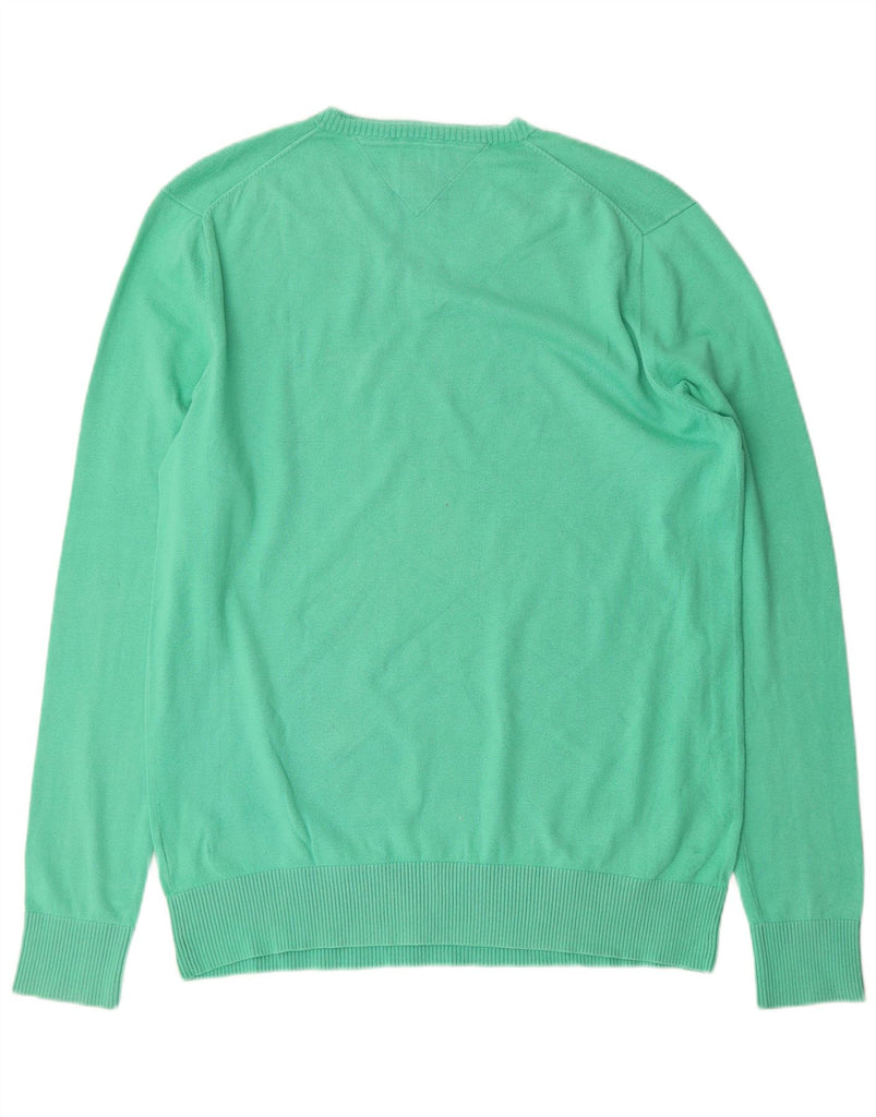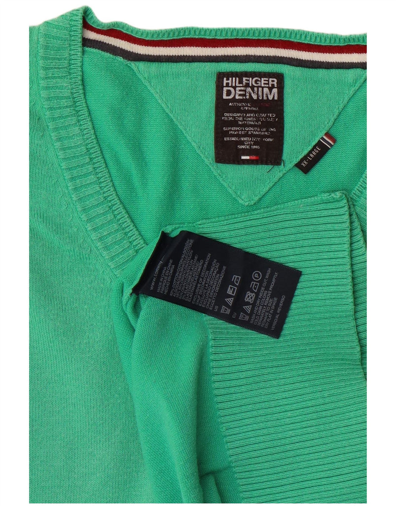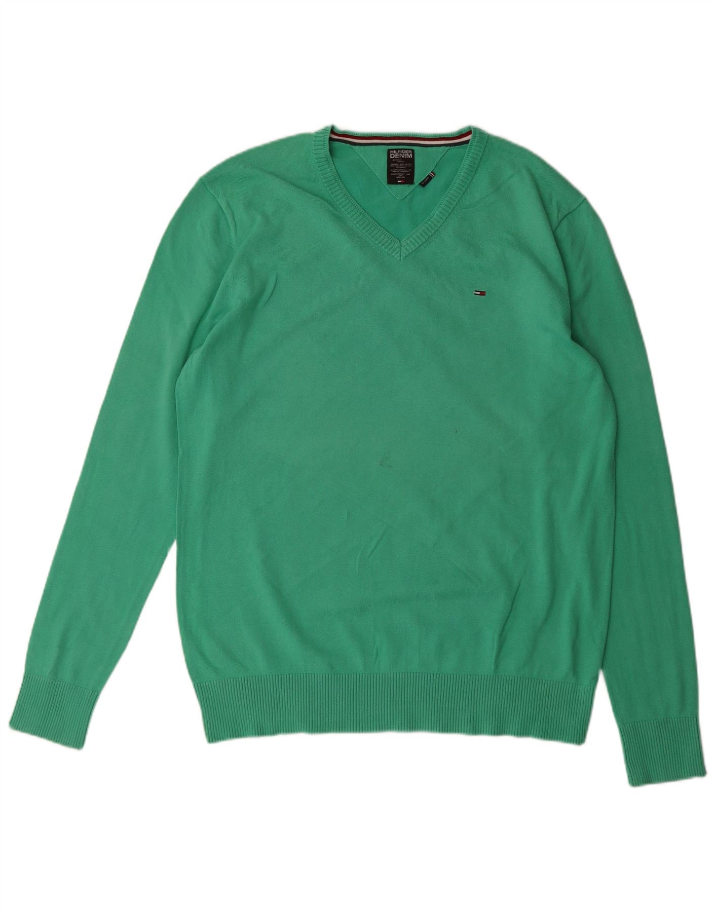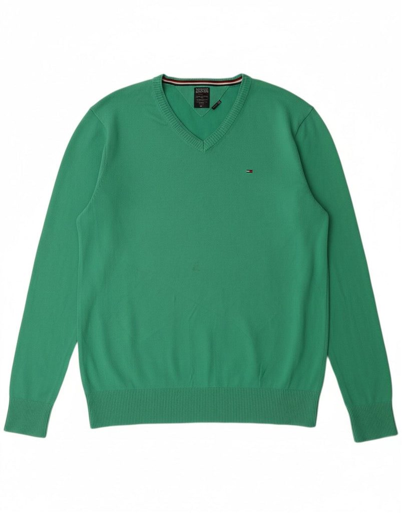 TOMMY HILFIGER Mens V-Neck Jumper Sweater 2XL Green Cotton Classic