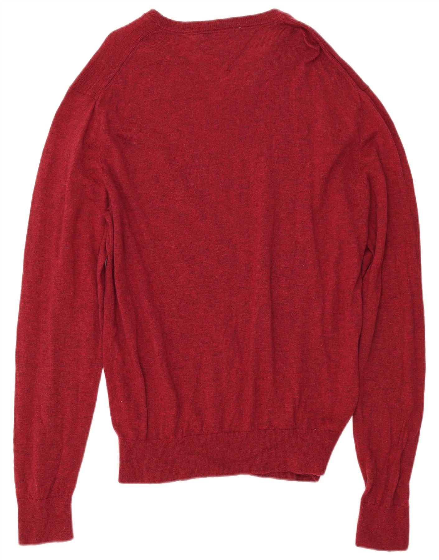 TOMMY HILFIGER Mens V-Neck Jumper Sweater 2XL Red Wool