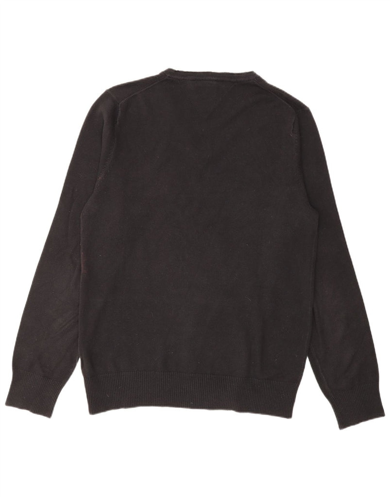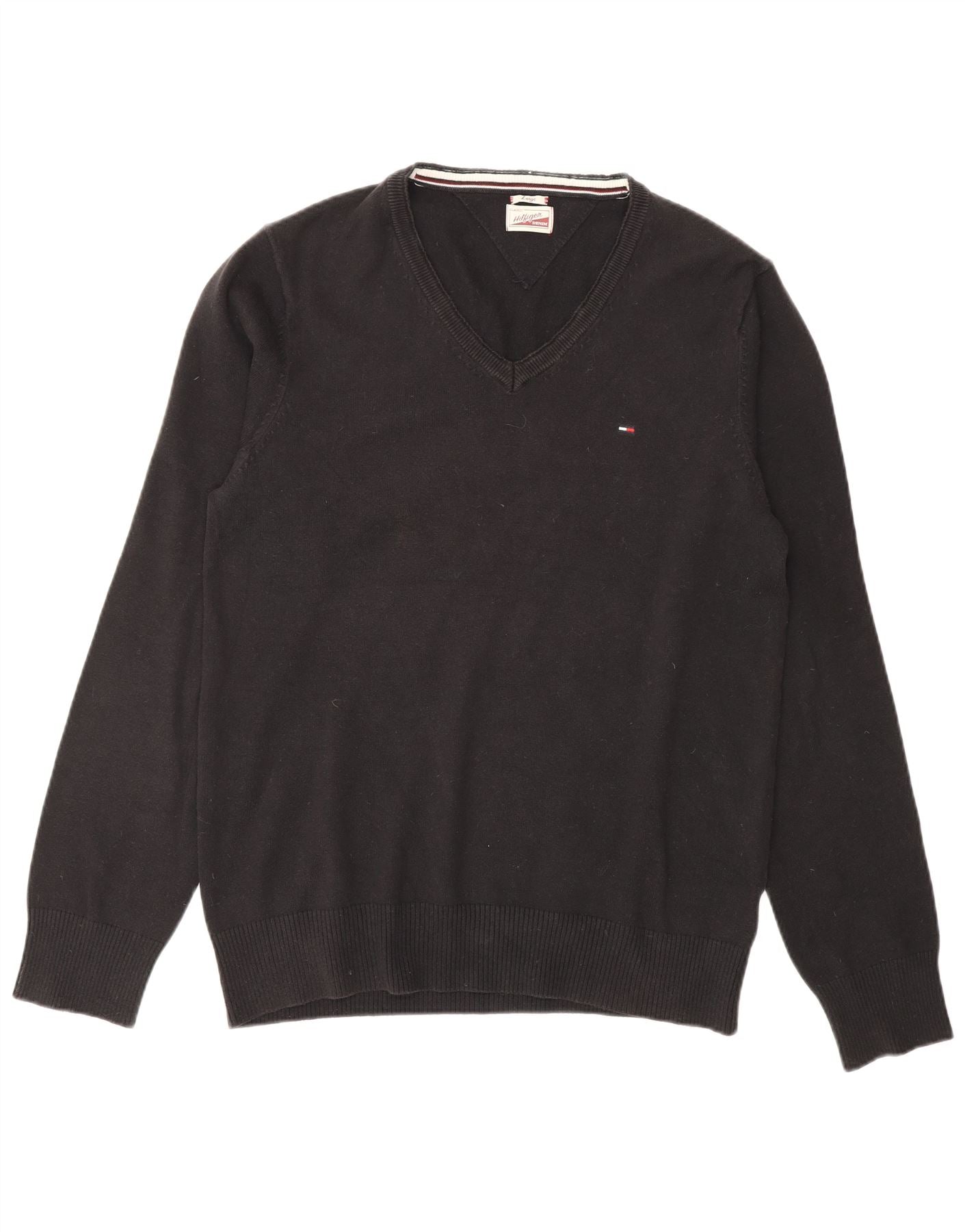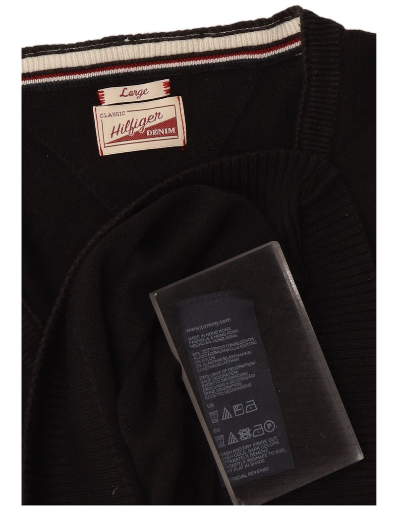 TOMMY HILFIGER Mens V-Neck Jumper Sweater Large Black Cotton