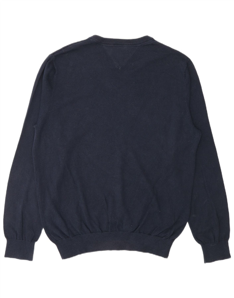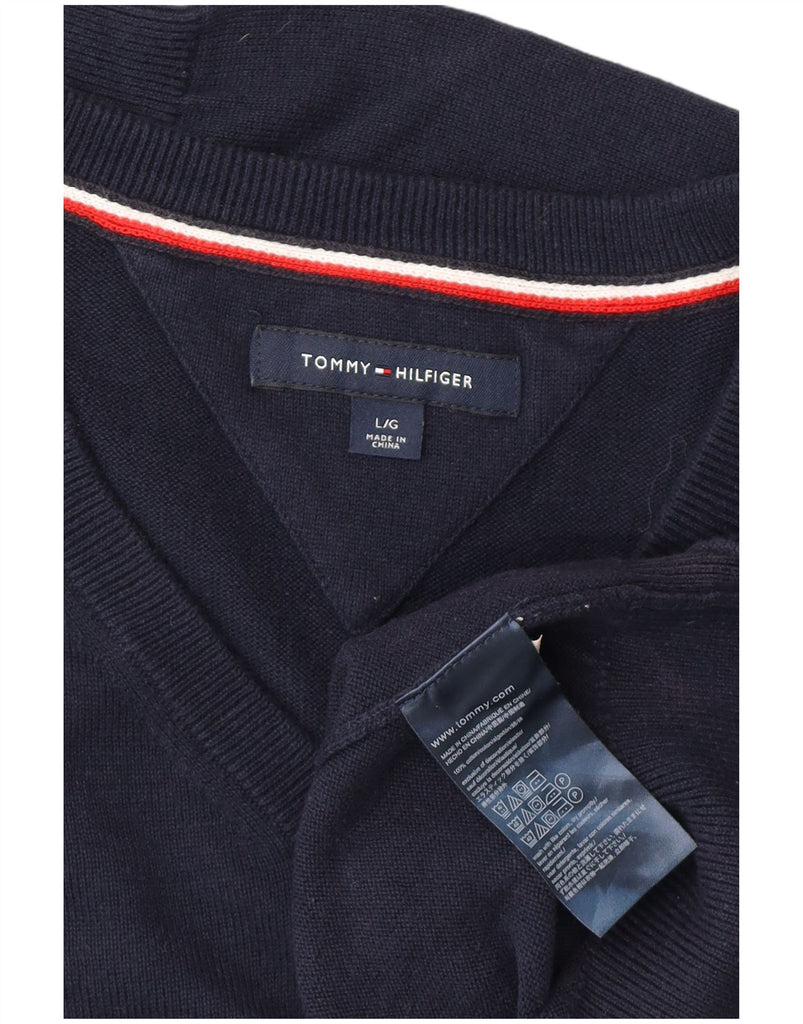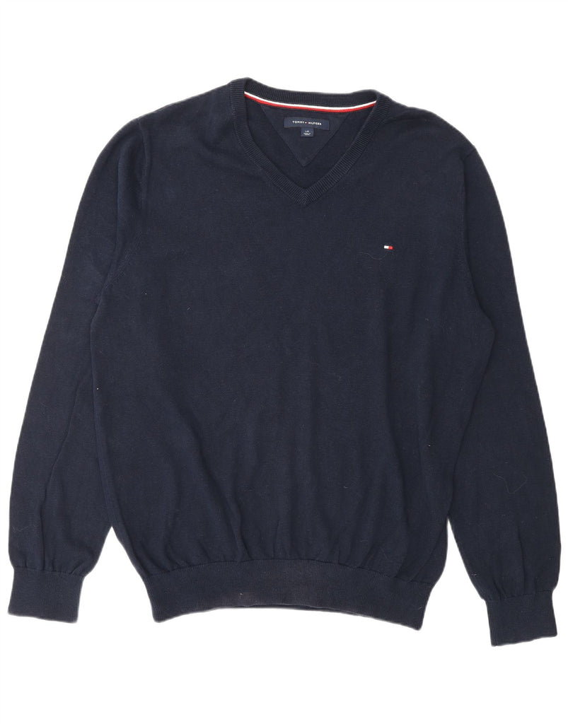 TOMMY HILFIGER Mens V-Neck Jumper Sweater Large Navy Blue Cotton