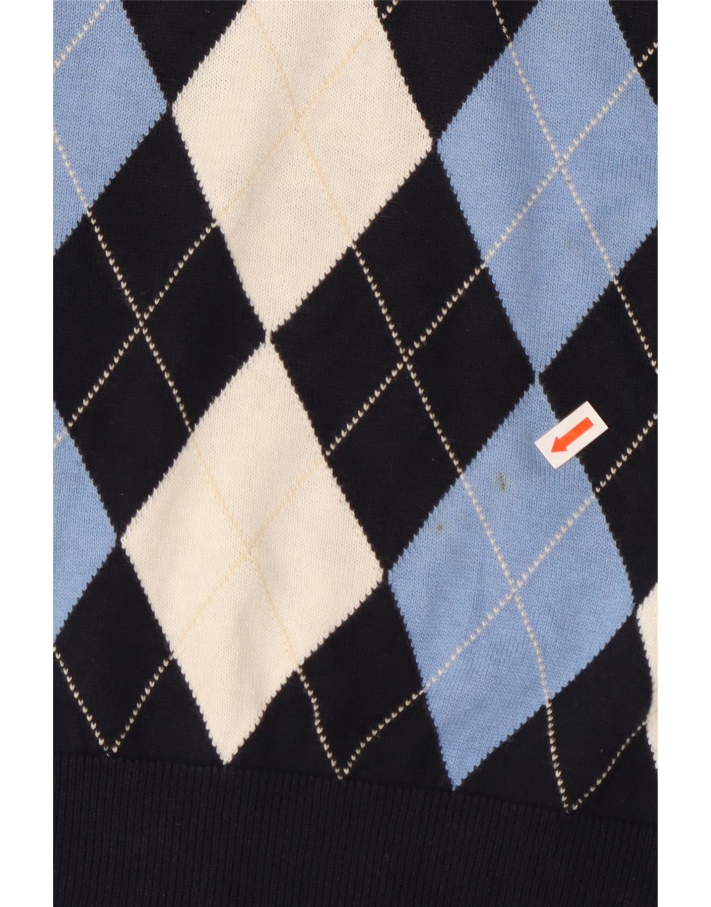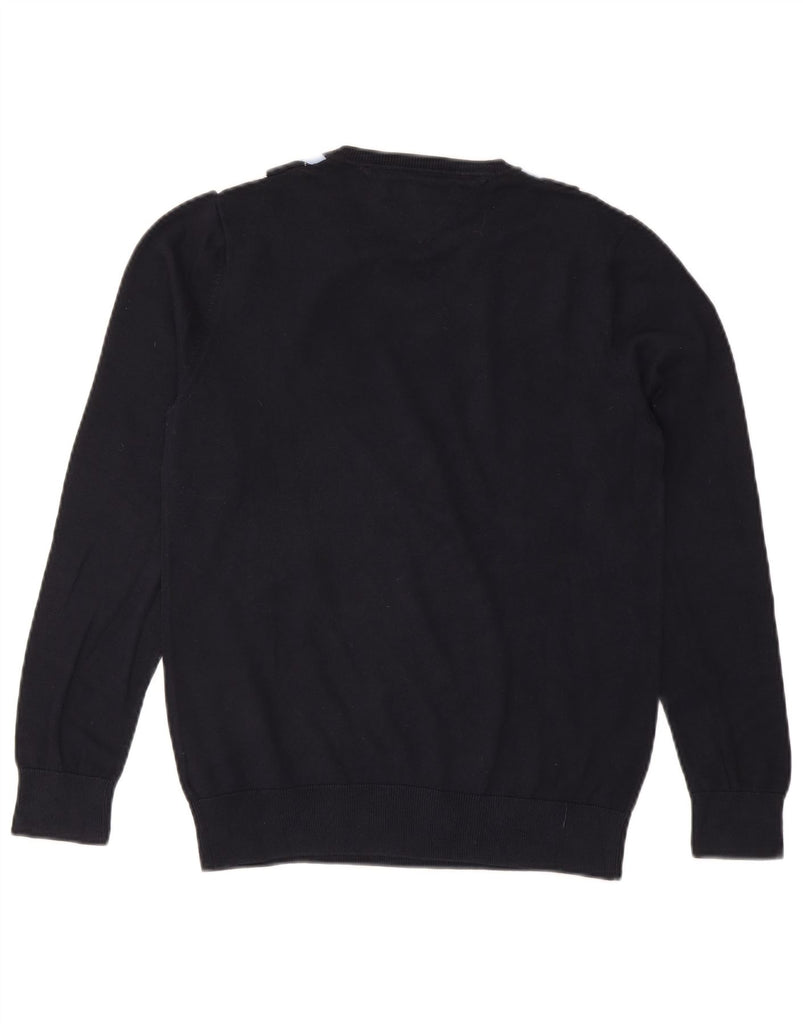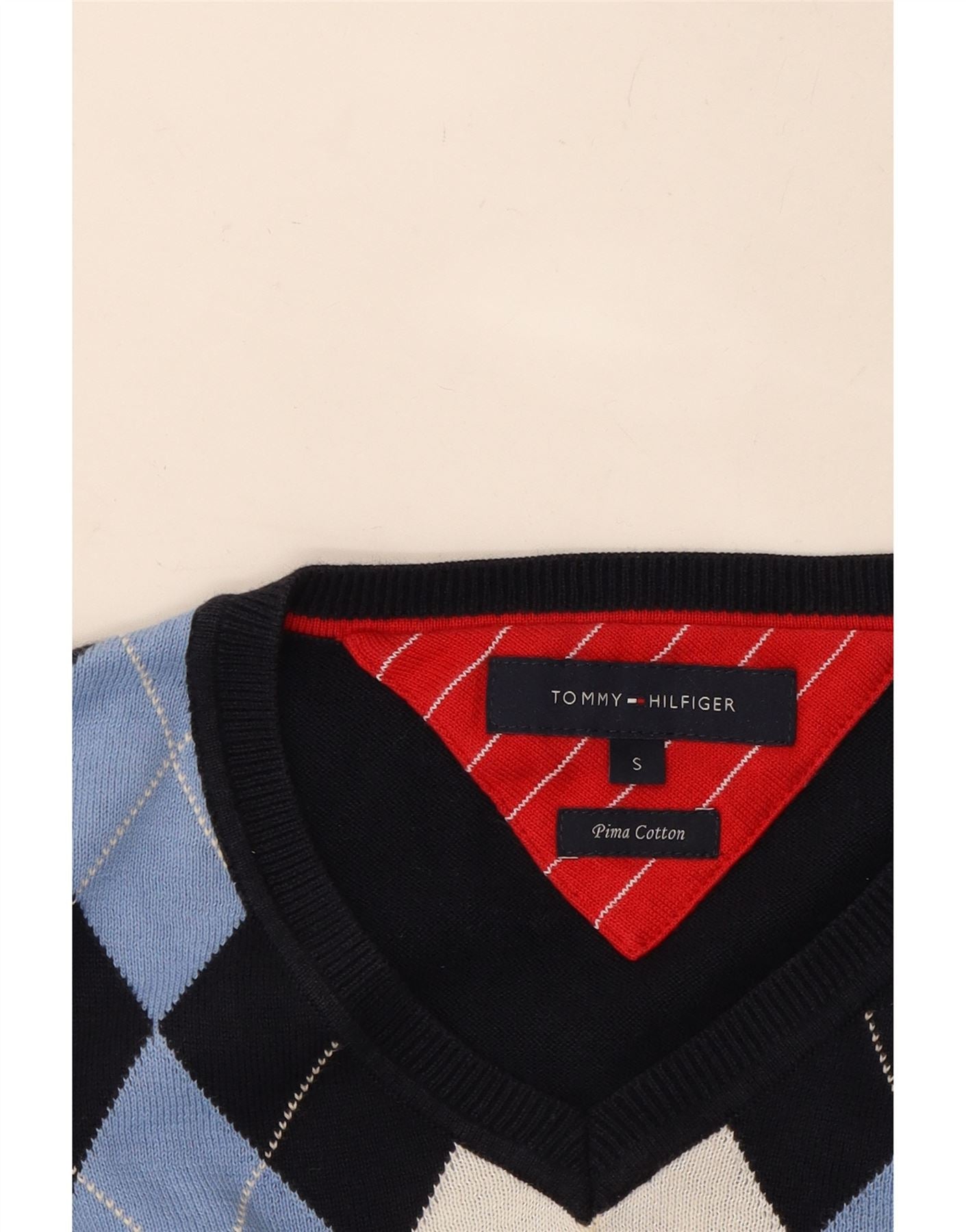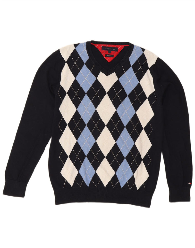 TOMMY HILFIGER Mens V-Neck Jumper Sweater Small Navy Blue Argyle/Diamond