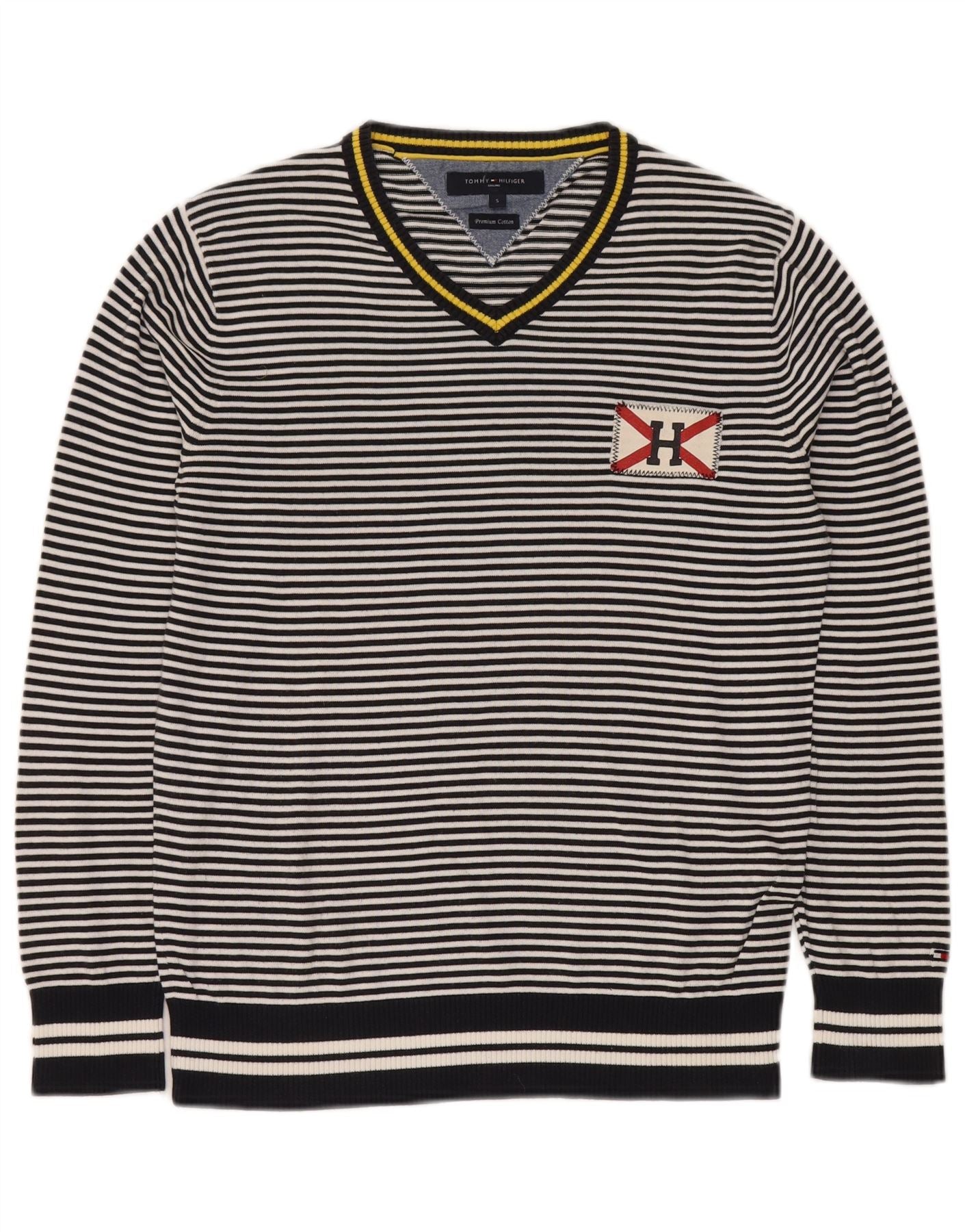 Home > Tommy Hilfiger > Men's > Jumpers > TOMMY HILFIGER Mens V-Neck Jumper Sweater Small Navy Blue Striped Cotton