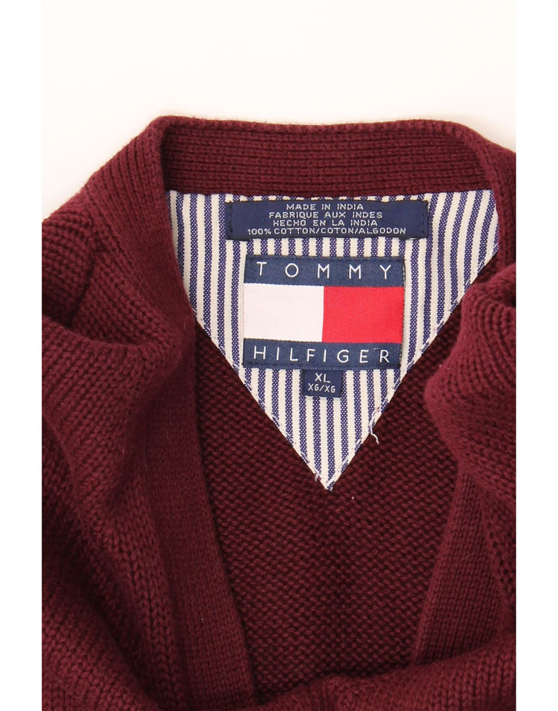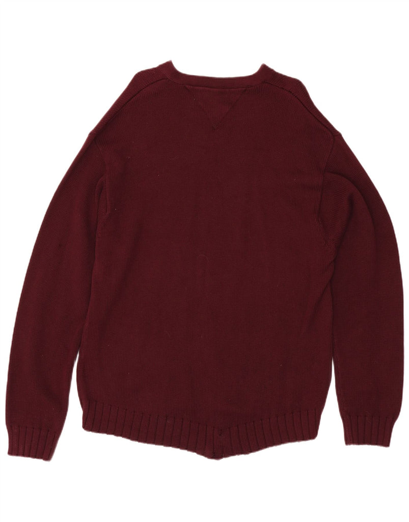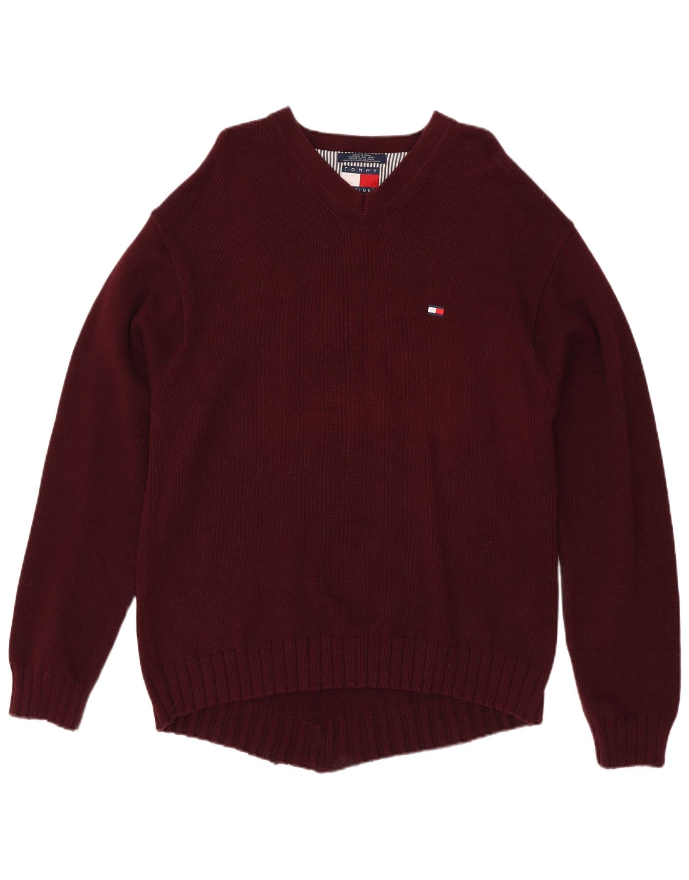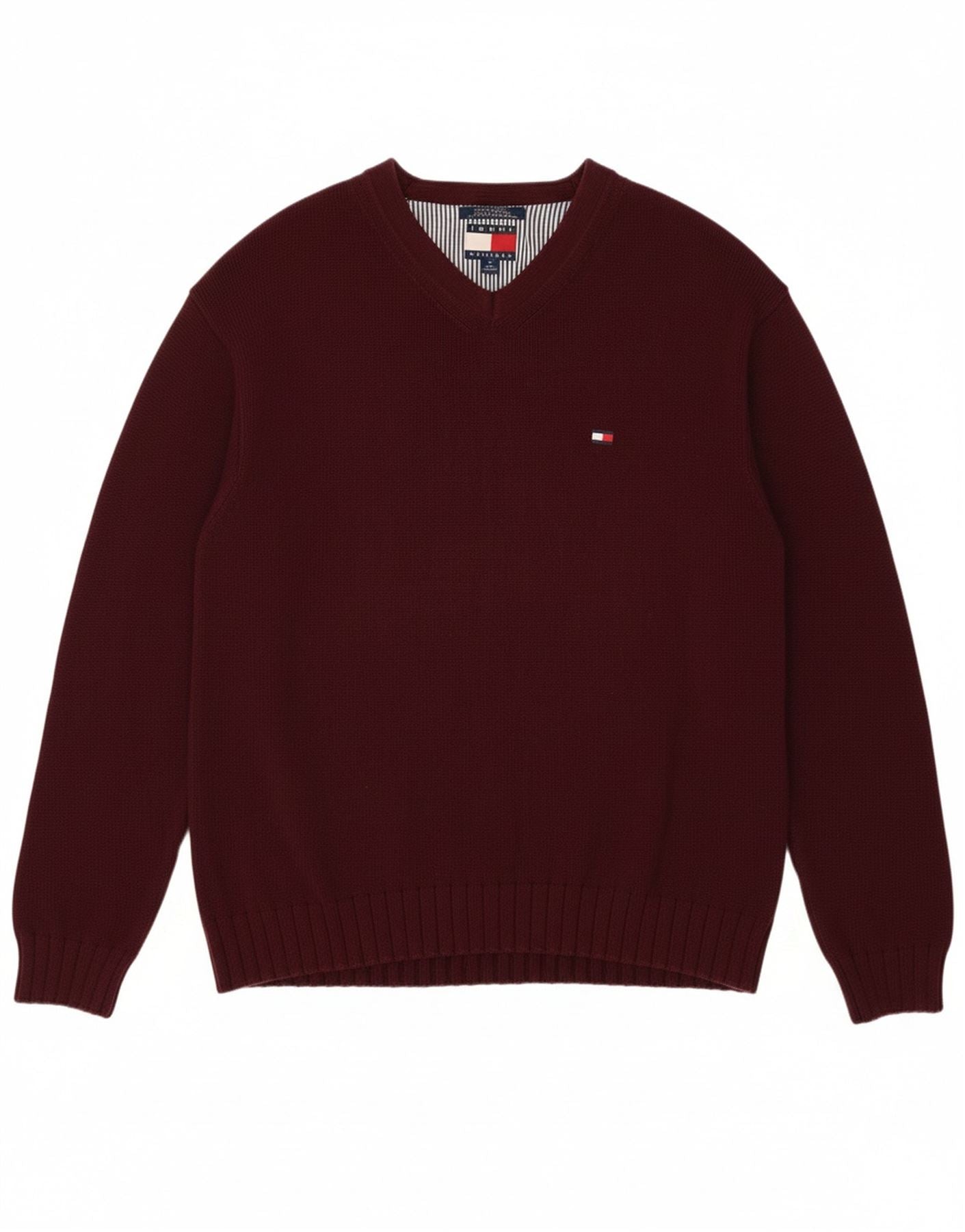 TOMMY HILFIGER Mens V-Neck Jumper Sweater XL Burgundy Cotton
