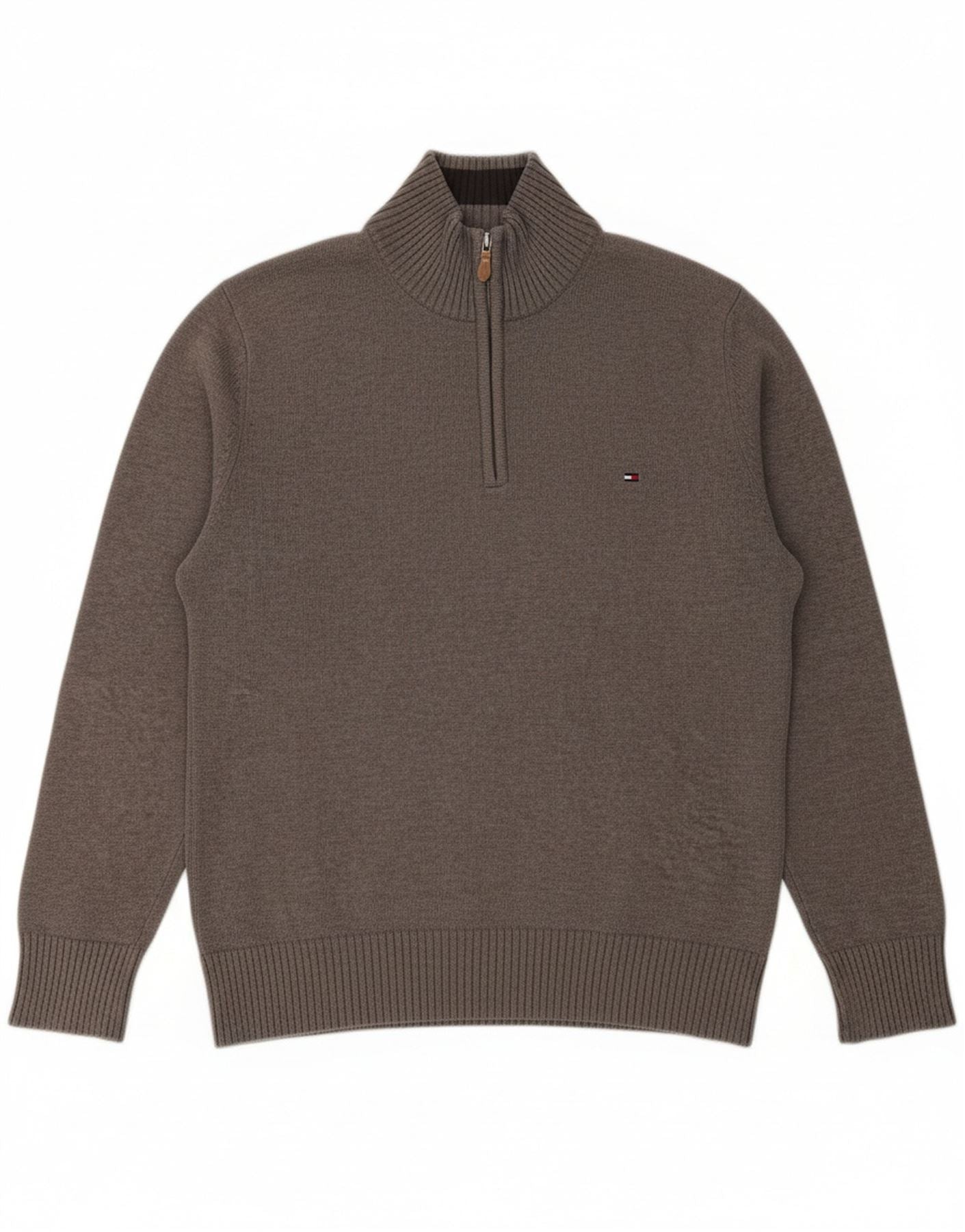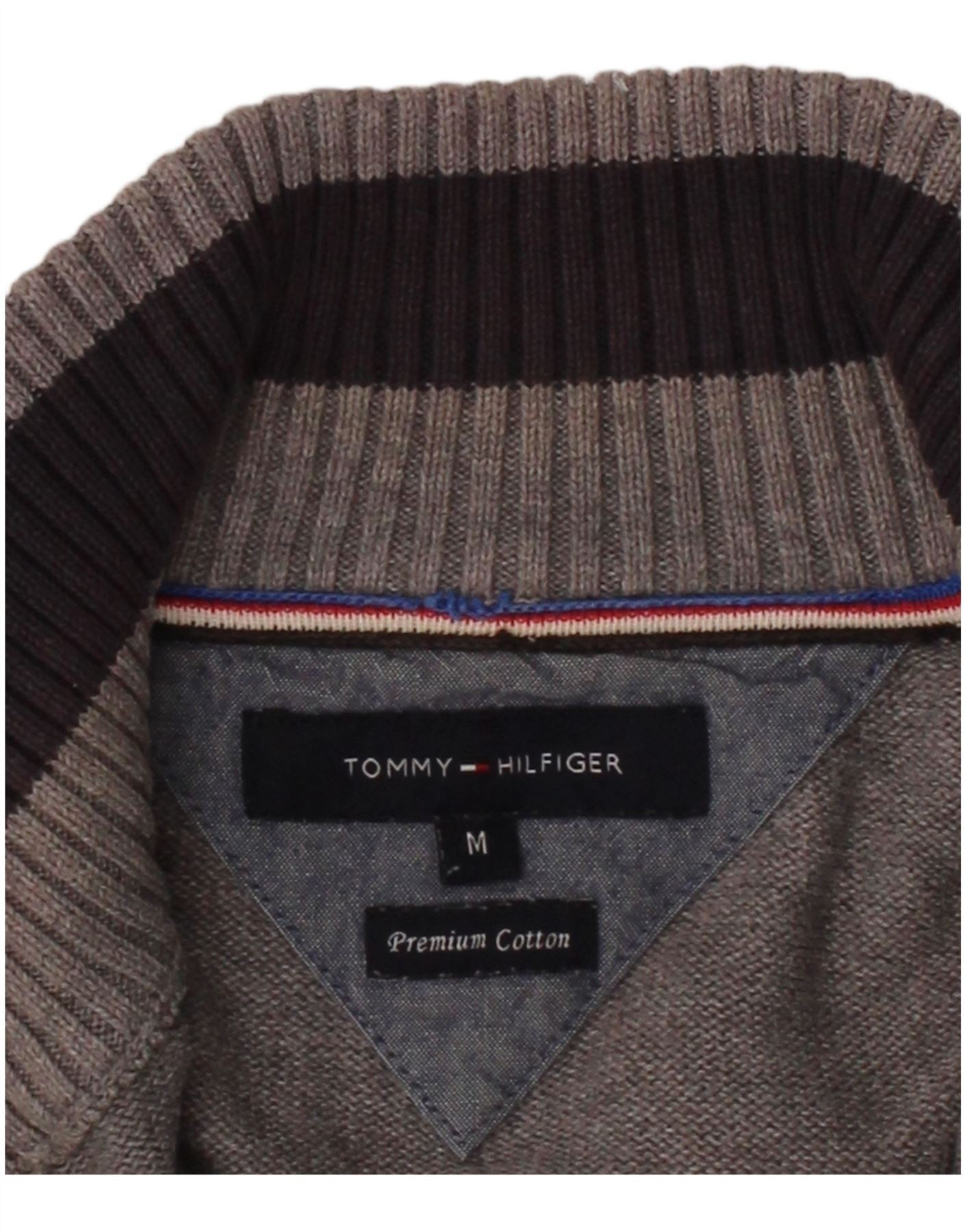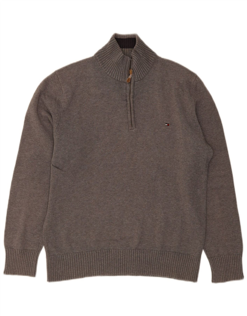 TOMMY HILFIGER Mens Zip Neck Jumper Sweater Medium Grey Cotton