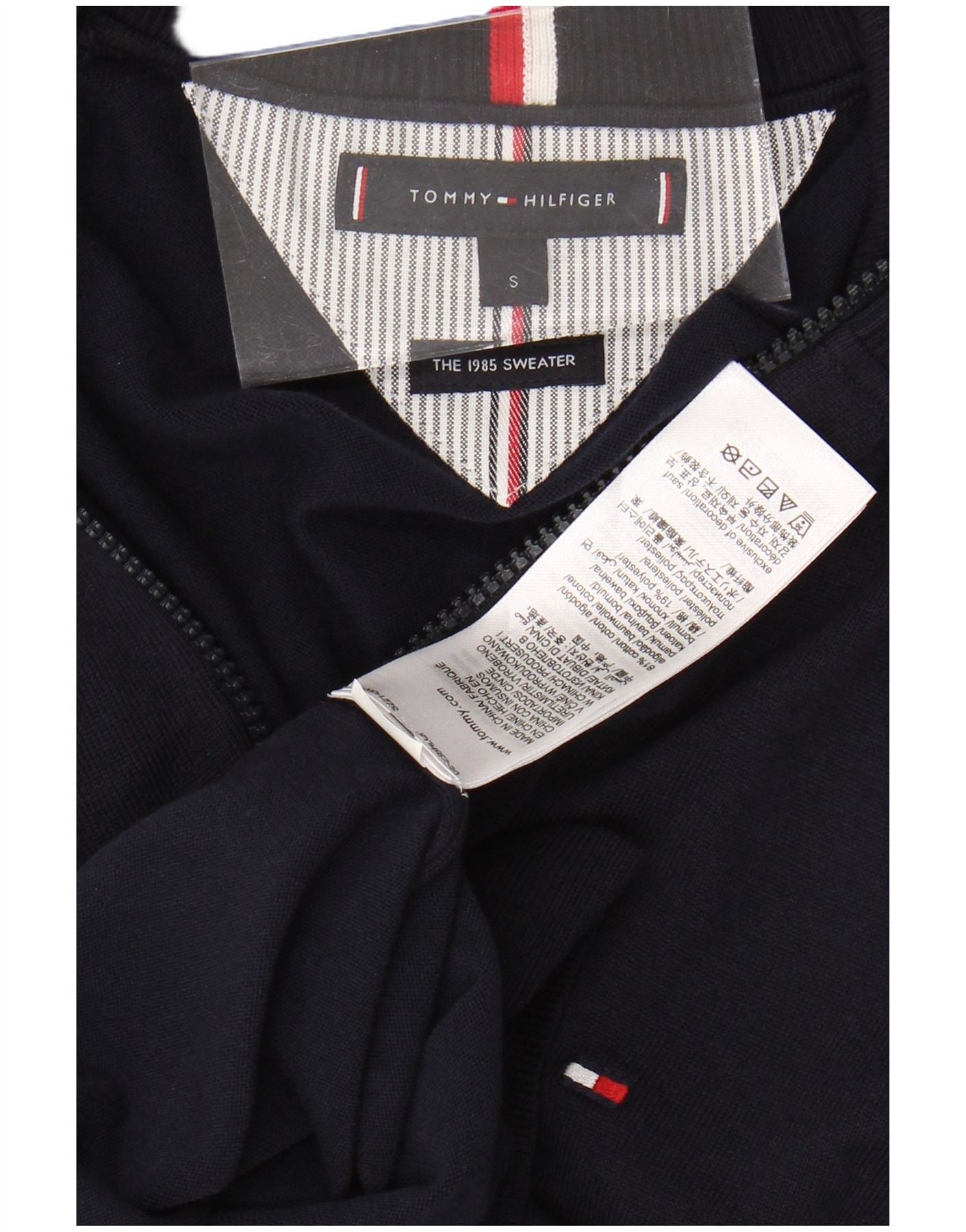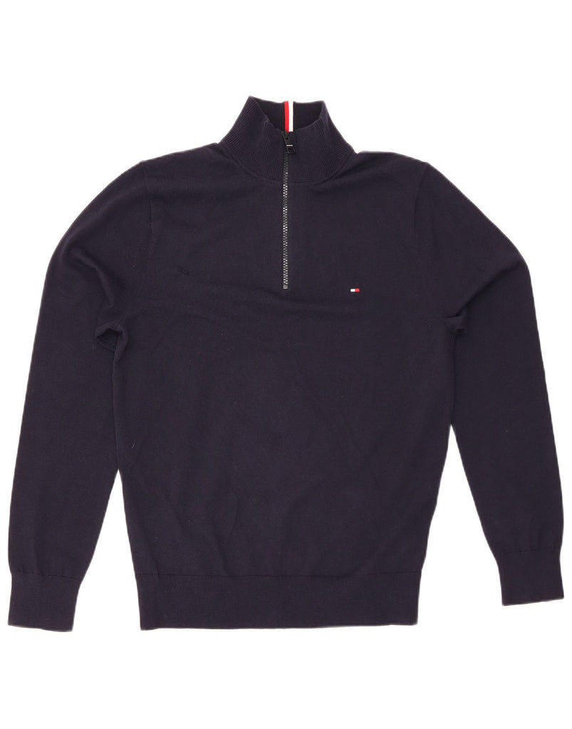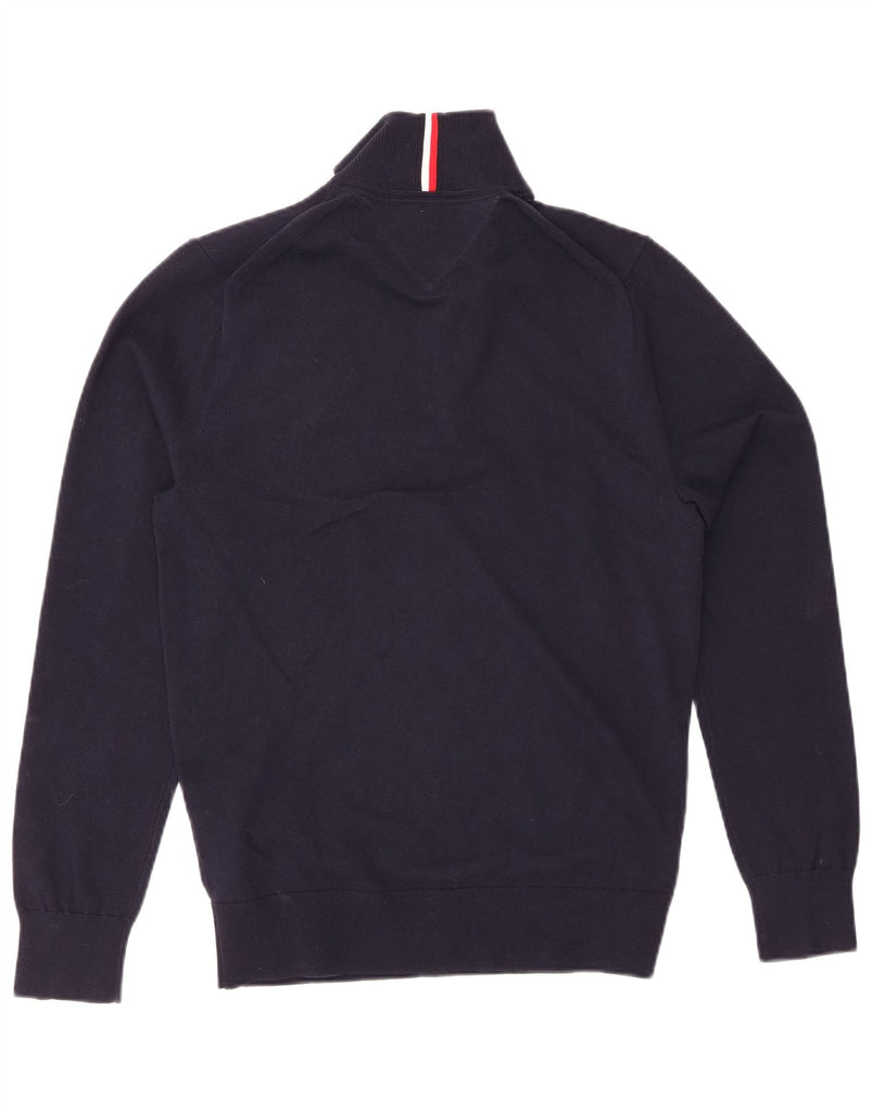 TOMMY HILFIGER Mens Zip Neck Jumper Sweater Small Navy Blue Cotton
