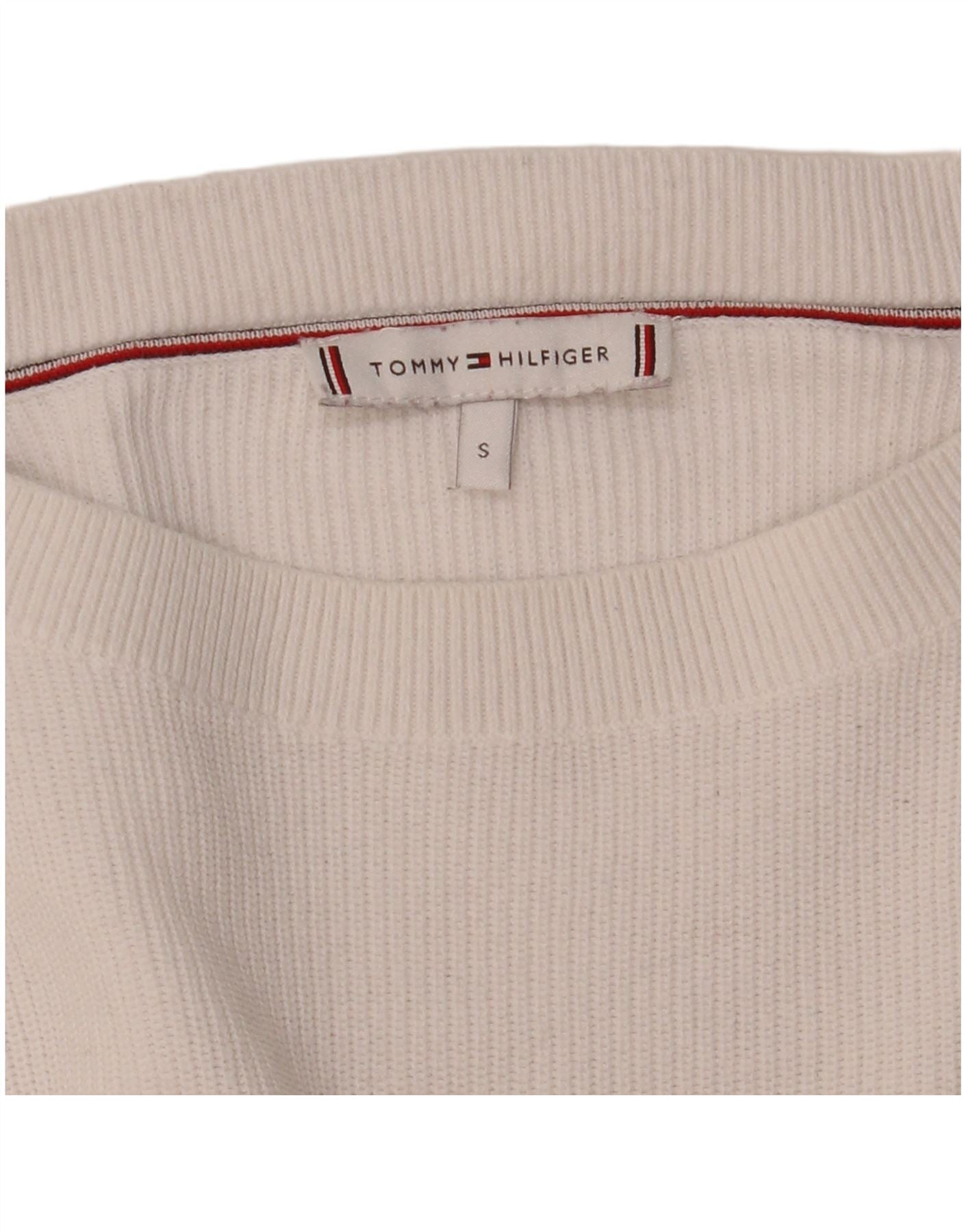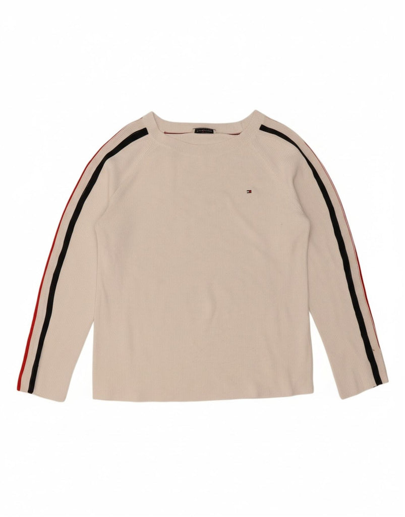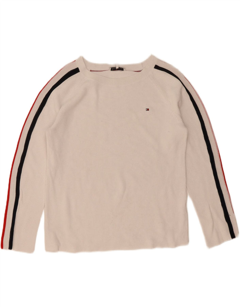 TOMMY HILFIGER Womens Boat Neck Jumper Sweater UK 10 Small White Striped