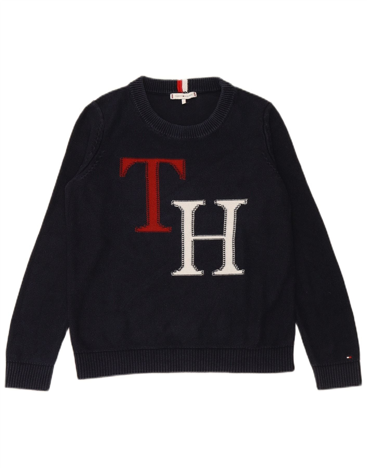 TOMMY HILFIGER Womens Crew Neck Jumper Sweater UK 10 Small Navy Blue