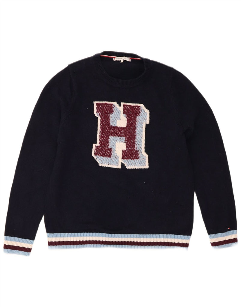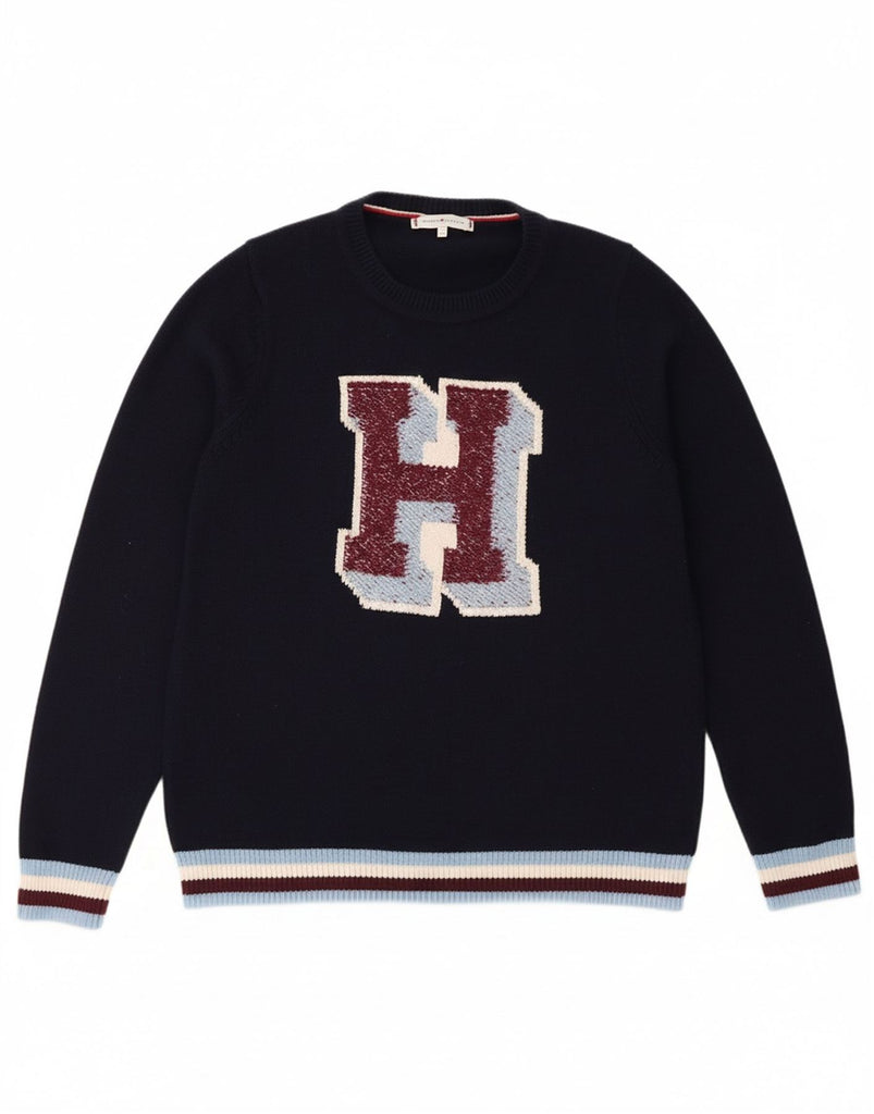 TOMMY HILFIGER Womens Crew Neck Jumper Sweater UK 14 Medium Navy Blue